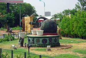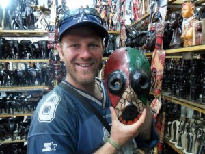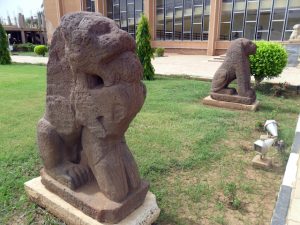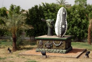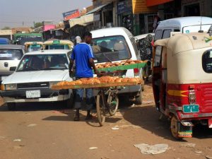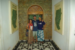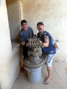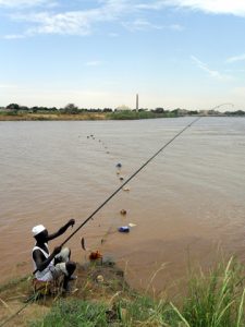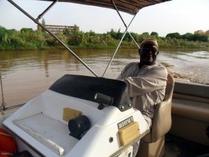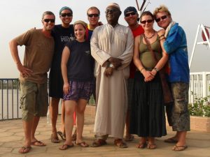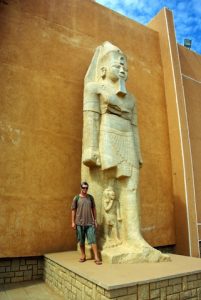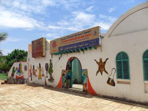 26 Jul: It was still cool out at 7 am and we were still fast asleep when Robby jolted awake and realized we were missing breakfast. After fueling ourselves for the rest of the day, we got ready to sightsee and Lucky and Ichiyo asked to join us. Our first destination was the Sudan Ethnographic Museum (free entry) which was actually still locked up when we went to visit at 8:35 am (opening time was 8:30 am). A super friendly policeman asked us where we were from and if we wanted to visit the museum. He then climbed over a fence to get a caretaker to unlock the museum for us…what service! The museum immediately impressed us, with an interesting entrance and a massive war drum at the doorway. We were allowed to take photos so we snapped away at the more fascinating artifacts. Some of the highlight exhibits for us included a cow’s ornately decorative attire full of cowry shells, a “truth” stick that was used to detect thieves and liars (it was pointed to everyone in a crowd and the guilty party would inevitably act nervous and give themselves away), a model of an ingenious irrigation system, and the war drum. The policeman had abandoned his parked car to be our museum guide, and he expected nothing for it in return! Such is the legendary hospitality of so many of the Sudanese that we have met. Afterwards, we were keen on visiting the Sudan National Museum, which was a further 2 KM down the street on Sharia Al Nil, so we proceeded to walk along the waterfront but were quickly denied access near the Presidential Palace. Instead, we had to backtrack to circumvent the palace and eventually we made our way towards the National Museum which cost 1.5 Sudanese Pound (SP) to visit. It was fantastic, with lots of Pharaonic carvings and statues on the first floor, while on the second floor, there were fantastic Christian frescoes. On the outside of the museum, showcased in covered enclosures, were several Pharaonic temples that had been relocated from various sites throughout Sudan. They were fabulous, as we had the entire temple to ourselves and could vividly see the hieroglyphics engraved upon the temple walls. We spent a good bit of time here and the only other Oasis folks we met were Damien and Anna. Everyone commented what a shame it was that so many others had missed the museum, and we left together to try to find a quick bite to eat, as Lucky was getting hungry. A roadside stand serving up fresh falafel/boiled egg sandwiches came to the rescue for 2 SP each, and poor Ichiyo had a disaster in the mud when she slipped and fell. Thankfully she was able to get cleaned up so it didn’t ruin her entire day, and we continued on with our tour to see the confluence of the White and Blue Nile Rivers on a nearby bridge. A heavily armed soldier forbid us to take photos, so Damien suggested that we walk down to the river to take photos (hence the bridge wouldn’t be involved) and we went along with his idea, snapping a photo of a local fishing catfish in the corner of where the two rivers merged as one. Afterwards, we were keen on hitting the Afra Mall, which is touted as Khartoum’s best mall. Robby thought the taxi fare was 5 SP, but after we crowded in and the ride turned into a very long one, we surmised that the taxi driver actually wanted 50 SP, but there was absolutely no way we were going to pay that. Sure enough, a confrontation in the parking lot ensued, and we eventually decided that a generous amount was 30 SP, which satisfied both parties. The mall was quite pitiful, with overpriced clothing stores, quite possibly Africa’s most poorly stocked supermarket, and a movie theater showcasing older release movies in Arabic only. We did enjoy the air conditioning, and found that the mall’s best bargain was the inexpensive perfume (100 ml for 15 SP). After hanging out upstairs in the food court area, trying to take advantage of the free wifi zone, we eventually became bored and wanted to head back to the campsite. 8 of us (Ally, Lucky, Laura, Lydia, Ichiyo and Matt) crowded into a minivan for 25 SP back to the Blue Nile Sailing Club, where we hung out in the shade and attempted to do a bit of reading. Cook group 6 (Sara, Lars, Naomi) made a delicious hummus and tzatziki meal with mince which was well received by all. We hung out in the sailing club garden to have access to power before calling it a day and crashing for the rest of the night.
