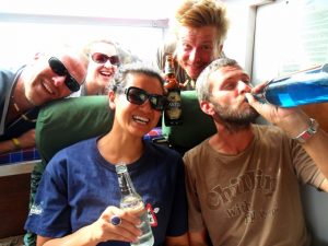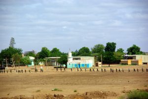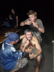 24 Jul: Sure enough, we arrived to the border town of Gallabat around noon, and Nancy was able to collect all of our passports to get us stamped out to Ethiopia with no problems. The money exchangers at the border were offering amazing rates for the Birr to the Sudanese Pound, beating market rates for the Dollar, Euro and Pound. We exchanged our remaining Birr, but they wouldn’t touch our extra Kenyan Shillings. Chris was given the runaround at the border, with the guards stating that we were missing a vital piece of paperwork. Since it looked like we would have a long wait, Nancy had everyone assist with a truck lunch, and we stuffed ourselves with salad sandwiches. Nancy was vital in helping us with our credit card fraud situation today…she bought a Sudan SIM card and we bought enough minutes to allow us to call Egypt and the USA to sort out our Cairo-Tel Aviv flights. Thank God she was so patient in letting us use her cell phone and we absolutely appreciated her today. After Chris got the remaining paperwork needed to cross the border, we were finally allowed to cross over and our last FDNCTP (First Day New Country Truck Party) ensued, with nasty bottles of gin going round the truck. Chris ran over a baby goat that dashed on the road at the last minute, and to our surprise, we didn’t stop to offer the owner any compensation, but rather, Chris sped up out of there. It was quite sad as we looked back to see a local run out onto the road to retrieve the goat carcass. We finally pulled into a bush camp around 6 pm, and cook group 4 (Sean, Fi and Lisa) made a spam fried rice meal for dinner. Meanwhile, the truck party continued but participation was limited. The main excitement tonight was that Lucky gave Robby a horrible beard trim, transforming him into a porn star lookalike and Luke and Gin had their tent collapsed as they tried to sneak off early for some hanky panky. Luke retaliated by chasing everyone in the buff, and tea bagging Mel (with the “Roman Mask”…don’t ask). It was a fun night, but rather subdued for a typical truck party.