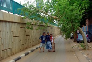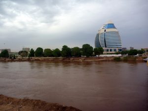 25 Jul: Breakfast was at 6:30 am and for some weird reason, we had our tent torn down and packed along with all our gear prior to 7 am. Canned spaghetti was on offer for breakfast, along with toast and peanut butter. We were on the road by 7:30 am and Becky managed to snag a spot on the beach for a siesta before waking up and taking a few photos of the northern Sudanese countryside. There were a surprising number of dead cows and goats littering the roadside, and several of them had bloated up several times their original size due to the intense heat. At the first pee stop, Becky and Gin managed to step in some quicksand like mud, which made a huge mess of their flipflops and feet. Becky must have used up about 20 baby wipes in an effort to get the super strength mud off her feet. Our truck lunch consisted of tuna and beetroot salad, and we found the Sudanese to be quite amused and curious to our presence. They are quite friendly and it is great to not have to hear “give me money”, which seems to be the first words that every child in Ethiopia learns! We arrived to the outskirts of Khartoum, the capital of Sudan, by early afternoon and waited by a gas station for a local guide to escort us into the city. The reason Chris needed someone to show him the route to our campsite, the Blue Nile Sailing Club, was due to the numerous low slung electrical wires throughout the modern city. We pulled into our sweltering campsite by 4 pm and immediately set up our tent before starting on a bit of laundry. It has been ages since we last washed our clothes, but with the serious heat of Khartoum, our laundry will be dry in no time. Becky decided to scrub our shoes while we were at it, so it was a good washing session. The Blue Nile Sailing Club is owned by a gregarious man named Kamal, and it is famous for housing the 145 foot long Melik, a gunboat used by Lord Herbert Kitchener’s campaign to recapture Khartoum and crush the Sudan Rebellion (in an attempt to avenge General Gordon’s death). It served a vital role during the Battle of Omdurman, and today, serves as the clubhouse for the Blue Nile Sailing Club. At 6 pm, Nancy had us grab 2 passport photos, $50 and a pen and we proceeded to fill out the necessary forms that would allow us to transit through Sudan. All foreigners require a photo permit and have to fill out an “Alien Registration” form, but thankfully the forms were straightforward and easy to fill out. Immediately afterwards, we set out with Lucky to scope out the internet situation, and found numerous computer stores, but nary an internet café. It was nearing 7 pm, and everything appeared to be closed already. We found a fast food joint and ordered chicken sandwiches (5 Pounds per sandwich) and they ended up being delicious and just enough food to tide us over until dinner. Since the internet situation was looking dismal, we decided to head back to camp to wait for dinner. Cook group 5 (Damien, Ichiyo, Laura and Gin) made a vegetable curry on rice for dinner and it was OK, a bit hot for the weather but tasty. A few folks were keen on hopping into their mosquito tents after dinner, but a loud group of locals had decided to use the central courtyard area as their socializing point. Chris went to complain and was told by one of the men that he was the owner and to shove it. Chris found a representative from the Blue Nile Sailing Club who immediately set the record straight and told Chris that the other guy was bluffing. Thankfully they relocated to another area of the club and the spotlight was turned off, allowing everyone to get a decent night’s sleep. The weather appeared to take a turn for the worst as high winds picked up and rain drizzled down, but it didn’t amount to much over the night as everything stayed dry.