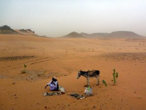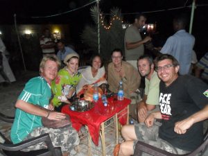29 Jul: It was a horrible night as the wind picked up in the early morning (around 3 am) and never let up. Mosquito tents were sent rolling across the desert, and even our pegged down tent became buffeted with heavy sands which blanketed our bodies, sleeping gear and tent floor. At one point, Becky got up to ensure the grass mat was still in place (it wasn’t, as Robby had already pulled it into the tent), and half of the tent lifted up and collapsed in on itself. What a nightmare. It was no surprise that at 6:30 am, Nancy came around informing us to pack up, as we were going to get out of there in a hurry as people’s tents were blowing away. We immediately tore down our gear and packed up, and were on the road shortly afterwards, grateful to be out of the sand storm area. By about 8:30 am, Chris pulled over so that cook group could make breakfast. It was still windy but at least the sand was kicking up in our faces. A few hours later, we pulled over in the town of Atbara, which was a water refill point. Chris instructed us to split into several small groups to refill the jerry cans, as we didn’t want to inundate any one kind Samaritan. That being said, we headed down the road and found a clean and fast flowing faucet, whose kindly owner didn’t mind us using. Once the jerry cans were refilled, we climbed back on the truck and drove onward towards the town of Tangassi. Little did we realize it at the time but 3 of our jerry cans were filled with the dirtiest, muddiest water you could imagine…it was only when we were filling up our drinking water that it became evident just how skanky the water was. In the town of Tangassi, there was a police check point which Chris blew past (they sent a guy on a motorcycle to chase us down) but thankfully the police weren’t very angry and they politely invited Chris to sit down on their bed as they processed some paperwork. The weather took a turn for the worse, with furious sand storms throughout the day. Visibility was limited and sand was in the air so we daren’t take out our cameras as they would have immediately seized up due to all the dust. Because it was impossible to get a good night’s sleep last night, Becky took a nap on the beach and immediately proceeded to drool all over Robby’s pillow. We drove pass more Sudanese pyramids, which were uncannily similar to the ones of Meroe. By 5:30 pm, Chris had found a suitable bush camp site, and cook group 2 (Marie, Robby and Lucky) made us bangers and mash for dinner. It was a hot night but we slept with our tent flap open (no bugs) so it was fairly breezy all night long.