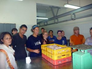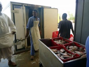 31 Jul: We broke camp at 8:30 am and reached the town of Wadi Halfa by 11 am. Finally, we had reached our destination we had been striving for these past few bush camps. Wadi Halfa is a tiny town, and we wondered what we would do to fill the time when Nancy briefed us that we would have free time until 4:45 pm when we would have to meet back on the truck to fill out our Sudanese exit forms. About half the truck got stuck with a truck guard duty (single person at 30 minute intervals), and we headed over to the only Internet Café in town to check on our email. It was relatively fast, and we were done in about 20 minutes (2 SP). Luke joined us for lunch (he wasn’t feeling 100% due to the heat) which was at a local joint where we pointed to the fried meat (lamb) and got served side dishes of herbs and bread…yum for 7 SP. Afterwards, we bought some cordial mix for our water and changed money ($25 worth with Damien and Anna who split $50 to exchange with us so we could get the rate of 3.25 with a larger note). It was scorching in town so we headed back on the truck and Chris drove us over to a nearby fish packing plant (Nubian Fisheries) where we could refill jerry cans and get new blocks of ice. It was amazing dumping ice cold water from the coolers on top of us, and each of us got a little thrill as we went from superhot to super cold in mere seconds. The owner of the Nubian Fisheries offered us a free tour of the facility, and we got to see how Nile Perch gets weighed, gutted, packed and stored. He even let us into the -40 Degrees Celsius freezers (although he didn’t find Chris shutting the door to be very funny). He was a very nice guy and we thanked him for his time and the tour. What an experience to go from +50 degrees to -40 degrees in less than two minutes! We drove back into town and scoped out a nearby hotel (Kilopatra) to see if there were any available rooms to upgrade (there weren’t until tomorrow). At a quarter to five, our passports were handed back out and Nancy walked us through filling the Sudanese exit forms, before handing them off to her handler and driving out towards our bush camp just outside of Wadi Halfa in some kind of a quarry area. Our Sudanese contact bought fresh falafels for everyone to accompany dinner, but Nancy must have forgotten about them as they never surfaced. Cook group 4 (Sean, Fi, Lisa and Mel) made a tasty beef sauce served with mashed potatoes, while the rest of us celebrated LEBCTP (Last Ever Bush Camp Truck Party) with a bit of alcohol and lots of 40 week-er stories. We had to pack for the upcoming week and clear out our overheads so it was a pit of a packing session as we tried to get ourselves organized. It was a hot night but there were no bugs so we slept relatively well with our tent door zipped wide open.