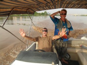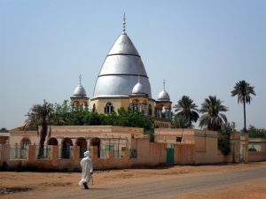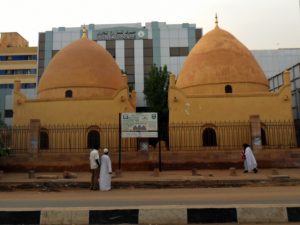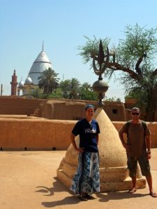 27 Jul: Breakfast was served up at 7 am again…ugggh, why can’t we sleep in since the weather is still relatively cool? We planned on visiting the Omdurman Souq today after breakfast, and Luke asked if he and Gin could tag along. Our group ended up being quite a sizeable one, as it included Anna and Damien, Luke and Gin, Ichiyo and Lucky and the two of us. We managed to grab a mini-van over to the souq for 25 SP, and Luke hopped into a van with Nancy, Katherine and Kendra for 15 SP. We walked around the souq for a bit, and immediately realized it was quite spread out. The US $ to Sudanese Pound exchange rate was quite favorable ($1 = 3.25 SP) so Robby exchanged $30. Becky found a unique leather/wood mask that she wanted to add to her collection, and it was priced at only 10 SP, so it was a bargain to boot. After wandering through the souq aimlessly, we finally backtracked to a shwarma joint where all of us ordered either a chicken or beef shwarma (3.5 SP) with a fresh juice (1 SP)…great value. The locals were extremely welcoming, smiling and saying “Welcome to Sudan”. It was a scene that repeated itself over and over again and we found the Sudanese to be some of the most genuinely friendly Africans we have met in this continent. Ichiyo wanted to try some fried fish, so a local accommodated her request and stated that it was free when she tried to pay. And he ended up giving her even more fish to share with the rest of us! We walked from the souq over to Mahdi’s (aka Muhammad Ahmad) tomb. The Mahdi was a popular religious leader who led successful rebellions against the Turco-Egyptian government of Sudan. Apparently, in 1884, he moved his military headquarters to Omdurman and died the following year in the fall of Khartoum of typhus. An ornate tomb was built in the Mahdi’s honor with a glittering silver dome and the site became a popular pilgrimage stopover for the Sudanese. However, the tomb was completely destroyed by the British after their conquest of Sudan, and what stands today is a replica built in 1947. It is closed to foreigners but we were able to take photos from the outside. Mahdi was succeeded by Khalifa (Abdullahi Ibn Muhammad), and he led his people until the decisive Battle of Omdurman in 1898, where Lord Kitchener killed Khalifa and defeated the Mahdists forces, thus sealing control of Sudan for the British. From Mahdi’s Tomb, we walked over to Khalifa’s house, which today houses a small museum. We took our time admiring the artifacts here, before leaving and attempting to find a taxi van to take us to the camel market, which apparently is a good distance away from the city. The round trip price quoted was 100 SP, and we debated if we were willing to pay it (we weren’t). So in the end, we hopped in the van for a ride to the Grand Holiday Villa for 25 SP, as we were told we could purchase a pool pass for the day. The hotel is quite posh and its prices reflect as the pool pass would have cost us a whopping 46 SP each. We opted to take the free hotel tour and even after looking at the inviting pool, declined to pay the money to use it. Instead, we headed into town to find a cheaper place to drink and 15 minutes later, we were in luck as we found a local juice bar where fresh grapefruit juice was served up for 2.5 SP. The locals swarmed us from all angles to chat it up with us, and everyone found it to be fun. Lucky even arm-wrestled a random stranger mere minutes after meeting him! Robby was ready for a break after our morning’s excursion, so we headed back to the campsite while everyone else walked around for a bit more exploring. Nancy had informed everyone that our tents had to be scrubbed with water, so we took care of washing our tent before Becky did a quick load of laundry and finished reading her book. In the afternoon, Kamal took us out on the Blue Nile on his motorboat, showing us the Blue Nile Bridge (Khartoum’s oldest bridge), the President’s house (a mansion on the waterfront) and allowed us to steer his boat. Awesome guy and we loved spending time with him. Becky and Ally were anxious to return by 6 pm as they both were on cook group tonight, and it didn’t take them long to cook up spaghetti for dinner, which went over well thanks to Naomi’s wine. After dinner, we hung out by the power point and did a bit of work before calling it a night.