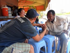 2 Aug: It was fantastic being able to lie in this morning with no early wake up for breakfast. By 8:30 am, we were stirring and when the power cut off at 8:45 am, it was time to get up. Thankfully power was back on by 9:30 am, but in the short time that it was out, the temperature seemed to soar. Robby put together peanut butter/honey sandwiches for breakfast and we spent the remainder of the morning lounging about in our respective rooms, reading and working on the computer for a bit. Robby had awoken to dozens of flea bites, so Becky helped rub in some anti-itch ointment all over his back and other hard to reach areas. Becky finished reading two books today (Touching the Void by Joe Simpson and The Elephant Whisperer by Lawrence Anthony) while Robby worked on backing up files. We figured that internet access in Egypt would be readily available, so we didn’t check email today and instead, managed to hang out at the Kilopatra hotel all day. Becky watched “Due Date” with Robert Downey Jr with Ally and Katherine and Kendra. Robby went out to eat dinner with Dowelly and Lars (smoked a sheesha pipe afterwards), Becky and Matt tried to help a local Sudanese guy program his TV (he wanted to watch videos from his USB drive on his TV) but they were only able to show him how to play slideshows of jpgs which was the only format that the TV recognized from the USB drive. It was another scorcher as we wet our sarongs and tried to get some sleep. Ally had been complaining about pain in her back, so we helped place her mattress on the floor directly beneath the fans so that she could get a better night’s sleep.