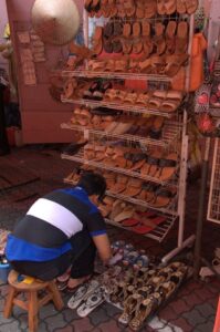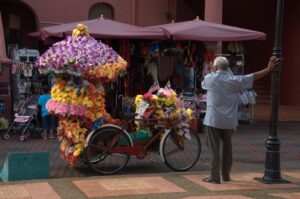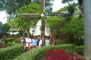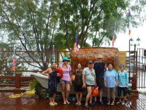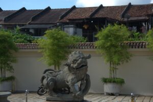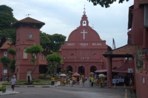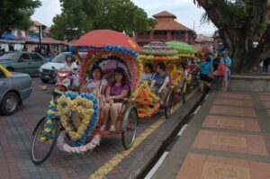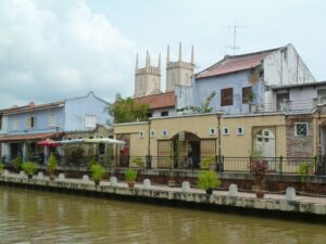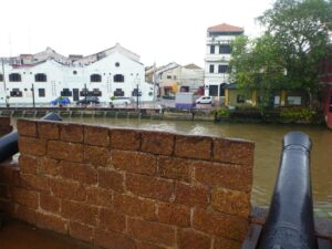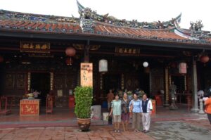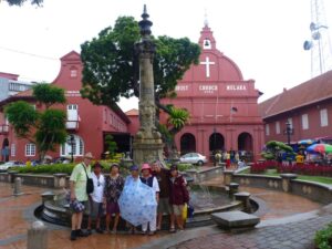 23 Nov: We arrived to Malacca at 9 am and caught a tender to shore at 9:30 am. Malacca is a walkable city, but from where the tender dropped us off, we weren’t sure how far away the core historical center was. Thankfully, a tourist office was within sight, so we stopped by there for a free map and continued on our way, reaching the Dutch Square in no time at all. Malacca (Melaka in Malay) once served as the old spice center for Eastern and Western traders, and as a result, has a long, colorful history interwoven between the Malay Sultans and the various European powers that passed through (Portuguese, Dutch, British). Today, the city enjoys UNESCO World Heritage Status, and we had a walkable city tour to help us navigate our way around the compact core. Our first stop was at the maroon colored Dutch Square, which is dominated by the Stadthuys, Christ Church, Red Clock Tower, and Victoria Fountain. The buildings here formed the center of Dutch Administration, with the Stadthuys (Town Hall) serving as the residence of the Dutch Governor. The circa 1753 Christ Church is the oldest protestant church in Malaysia, and the Victoria Fountain was built in commemoration of Queen Victoria’s Diamond Jubilee. Despite the early morning hour, the square was getting quite crowded, so after admiring the sights, we crossed the Malacca River via the Tan Kim Seng Bridge, heading towards Malacca’s Chinese section of town. A massive dragon floating in the air greeted us as we entered this lively area, and we ducked down a side street (Jalan Tun Tan Cheng Lock, formerly known as Heeren Street) to see the homes of Melaka’s richest Chinese merchants. Many of Heeren Street’s two story shophouses/residences hail form the mid-1700s, with the residents adopting the Dutch construction methods (bricks and clay roof tiles). From Heeren Street, we made our way over to the famous Jonker Street, which is chock full of curio and antique shops. Our walking guide mentioned that Wah Aik Shoe Maker is one of the last shoemakers in the world that still sells shoes for bound feet! Jonker Street had a lively atmosphere, and we wanted to spend more time here but wanted to check out one of the highlights of this area, the Cheng Hoon Teng (Temple of Clear Clouds), which is reputedly one of the oldest and finest temples in Malaysia. Located on the appropriately named Temple Street (Jalan Tokong), the temple was founded in the mid-1600s by the Chinese community. We enjoyed our visit here and can attest that it is a lovely temple. Next stop was a quick glance at Temple Street’s Kampung Kling Mosque, which is a legacy from the settlement of South Indian Muslims (Kling) who once lived in Melaka. The mosque has an interesting triple-tiered roof and a towering pagoda like minaret. Also on Temple street resides the oldest Hindu Temple in Melaka, the Sri Poyyatha Vinayagar Temple, which was built to honor the elephant headed god Ganesh in the late 1700s by Melaka’s South Indian Hindus. We found it fascinating that on one street alone, a Chinese Temple, Muslim Mosque and Hindu Temple co-existed peacefully for centuries. We sure could learn a lot from the Melakans! Lunch was a picnic by Victoria Fountain in Dutch Square, and afterwards, we braved the midday heat for a hike up St Paul’s Hill (formerly Malacca Hill) to reach St Paul’s Church. St. Paul’s Church is home to one of the last remaining Portuguese structures on Melaka. Constructed in the 1520s as an act of gratitude by a merchant who had survived an ocean storm, St Paul’s is now in ruins, housing old Portuguese tombstones. From St Paul’s, we walked downhill for a quick glance at the Dutch Colonists graveyard before reaching A Famosa, a Portuguese fortress built in 1511. It is considered one of the oldest European architectural remains in Asia. The only portion still standing is the old gatehouse, Porta de Santiago, which is an arched gate that can still be strolled through today. Adjacent to A Famosa is a wooden replica of the Malacca Sultanate Palace (Istana Melaka). Since we were satisfied of having checked off the “must sees” of the city, Bob, Hai and Robby were clamoring for beer, so we made our way to Indian section of Malacca and stumbled upon Sea Horse Beer (14.8% alcohol) that had the boys buzzing in no time at all. Bob made a new friend with the shopkeeper who let us escape from the deluge of rain under his shop’s canopy. Once there was a light break in the rain, we headed back towards the cruise, stopping for a quick group photo at the now abandoned Dutch Square (come on people, its just a bit of liquid sunshine!), followed by a brief stop for souvenir shopping. Everyone agreed that Malacca is a lovely city, a definite highlight to our Malaysian ports of call.