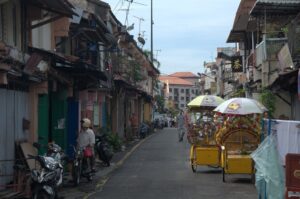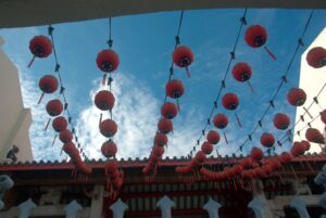 20 Nov: Today’s port of call was a half day in the lovely UNESCO World Heritage city of Georgetown, the capital of Penang. We were off the cruise shortly after 8 am and were immediately accosted by dozens of taxi/tour drivers eager to drive us around this compact city. Declining the multiple offers we received, we made our way to the Queen Victoria Memorial clock tower and nearby Cornwallis Fort to get our bearings. By circumnavigating around the fort, we strolled past the City Hall and leisurely made our way to the highlight of the city, the indigo blue hued Cheong Fatt Tze Mansion which was built in the 1880s by the area’s most powerful Chinese trading and shipping tycoon, Cheong Fatt Tze. Unfortunately, only guided tours were on offer here, with the earliest one starting at 11 am, so we had to admire the mansion from afar. Georgetown achieved UNESCO status with its numerous attractive 19th Century temples, churches, mosques, and colonial buildings, and locals advised us that the best way to see them was to simply stroll down the streets of the city, getting lost amidst the historical narrow streets. The temples and mosques of Georgetown did not disappoint, and we visited the Soon Tuck Wooi Kwon Temple, Kapitan Keling Mosque, Sri Mahamariamman Temple, and Khoo Kongsi Clan House. Located on Cannon Square in the heart of old Georgetown, Khoo Kongsi is the grandest clan house in all of Malaysia, with an especially elaborate façade. The entry fee to visit this temple was well worth it, and we were lucky to visit during a brief interlude from the horde of cruise ship visitors. To round out our visit to Georgetown, we made our way to the waterfront where the Weld Quay Clan Jetties are located. The jetties are a reminder of yesteryear, as they originally served as home to the 5 main Chinese clans (Lim, Chew, Tan, Lee and Yeoh). Appearing a bit dilapidated, the jetties are home to the descendants of the original Chinese immigrants who came to Georgetown to seek their fortunes over a century ago. Our favorite jetty was the Chew jetty as it was the most picturesque. Since we had to be back on board before 1 pm, we decided to grab lunch on the cruise. This was despite the knowledge that Penang’s culinary scene is world famous, and a real highlight to any visit here. Dishes not to be missed include Penang Laksa, Penang Char Kuey Teow, Nasi Kandar, Mee Rebus and Hokkien Mee (to name a few). We reluctantly tore ourselves away from the Georgetown food stalls to head back to Swettenham Pier to board the ship, where we could admire the skyline of Georgetown from the dining room. Great day here! We really loved compact and walkable Georgetown and wouldn’t hesitate for a return trip here.