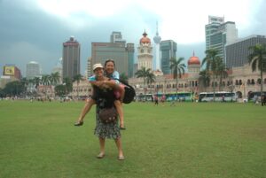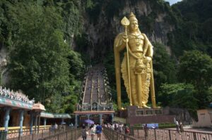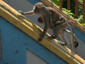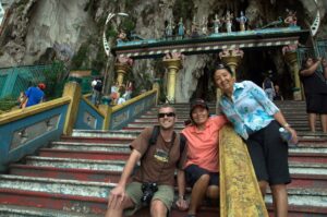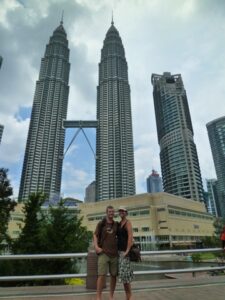 22 Nov: Our port of call today was Port Klang, located about 90 minutes from Kuala Lumpur. Since we had never been to KL before, we wanted to make a special effort to get into town, despite the notorious traffic issues we had read about before the trip. Bob wasn’t feeling 100% today, so it was a group of 7 of us that hopped on Costa’s free shuttle over to the cruise terminal where we were faced with the notorious taxi mafia. When we tried to negotiate directly with the taxi drivers, we were immediately referred to a negotiator who showed us a “fixed price” list for the day’s excursions. One group that tried to bypass the negotiator immediately got their taxi driver into trouble, with a huge uproar raised by fellow drivers. We later heard that the driver would be banned for life from ever picking up passengers in the cruise terminal area! We did find that there was some wiggle room in the negotiations, and we managed to get a large 7 pax van for the entire day to take us to whatever stops we wanted (Batu Caves, Merdeka Square, Petronas Towers, Chinatown, the National Mosque, the railway station, and the Presidential palace) for 500 MYR. Our driver was a lovely Muslim woman named Noora dressed in traditional garb, and we found it interesting that she was allowed to drive a taxi. She explained that the Malaysian government recently started encouraging women to enter the workforce as taxi drivers, providing incentives to meet their goal of 30% female in a male dominated environment…very interesting! Thankfully, the drive into the city only took an hour, but we had to drive a bit further (13 Km north of KL) to reach Batu Caves, our first destination of the day. On our way into the city, we spotted an overturned truck in the opposite lane, and traffic was backed up for miles. Noora told us it is quite a common occurrence unfortunately, as truck speedsters routinely flip over their cargo. We explained that everyone would have to climb 272 stairs to reach the top of the limestone hill at Batu Caves, and encouraged everyone to leave non essentials (food/drink) in the van as it wasn’t necessary to lug it up and down all day. Of course, the Vietnamese clan paid us no mind, and Ji Sung was immediately accosted by aggressive long tailed macaque monkeys trying to grab at her coffee and snacks. Robby to the rescue as we loaded up all the goodies into his bag and hoped the monkeys wouldn’t rip him to shreds trying to get at the food. The hike up to the caves was easy, and we spend some time here checking out one of the most popular Hindu sites in the world (outside of India). Anh Hai had a blast feeding/teasing the monkeys and Robby had fun teasing Hai…acting like a monkey was trying to steal Hai’s bag of food. It was amazing that both of them emerged from the caves without getting bitten by an angry monkey, as there were quite a few close calls. After the caves, we headed over to the Petronas Twin Towers complex (known locally as KLCC or “Kuala Lumpur City Center”) for lunch and a look around. Noora recommended the food court on the second level of KLCC for lunch and her advice did not disappoint as there were lots of cheap eats here. We filled up and afterwards, headed outside for a few photos of us by the towers before linking back up with Noora for a stop in Chinatown. This area of town is a shopping district, and we bought some souvenir shirts for the Vietnam crew while they loaded up on fresh roasted chestnuts. The next stop on our busy day was the fabulous Independence Square (Merdeka) , located in front of the impressive Sultan Abdul Samad Building (housing the ministry of communication, information and culture). This massive grassy plain used to serve as the cricket green of the Royal Selangor Club, which represents the city’s colonial era as it was founded in 1884 by the British who ruled Malaya at the time. Quick hops to the national mosque, the Moorish styled railway station, and the Presidential Palace (Istana Negara) rounded out the rest of our afternoon, and overall we really enjoyed our whirlwind tour of Kuala Lumpur, a city we wouldn’t hesitate to return back to. Noora had been advised by other drivers that there was another accident on the way back and she cautioned us that we should allow enough time for the return trip due to the delayed traffic and we were glad that we heeded her advice. It took us about 2 hours to get back to the port because of a big truck that flipped over in the road, blocking two lanes. We arrived back to the Costa Victoria at 1730 and thanked Noora for being a fantastic ambassador for her country…we had a wonderful day exploring the capital city of Malaysia. To celebrate our excursion, we headed up to Bob and Ann’s room for cocktails (amazingly Bob was feeling much better after a day away from the family) and then spent the remainder of the late afternoon in the pool/hot tub while the Victoria departed from Port Klang. Two thumbs up for our visit here!