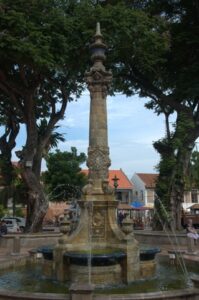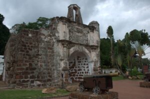 The last remnants of the Portuguese occupation of Malacca can be found here at A Famosa Fort which was built in 1512. All that remains of the fort is a single gate (Porta de Santiago). The Portuguese used hundreds of slaves to build the fort's walls, scavenging stone from nearby palaces, cemeteries, and mosques to complete the structure