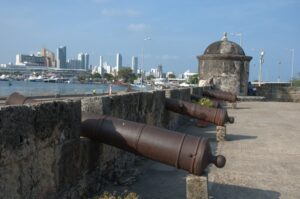 16th Century canons perched upon the city walls; Cartagena