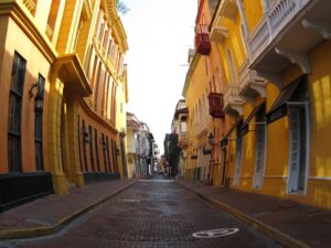 The scenic side streets of the walled city of Cartagena