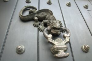 A detailed lizard door knocker