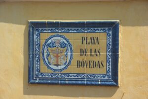 Street sign for Las Bovedas, one of Cartagena's most popular shopping destinations