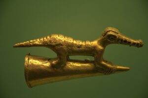 Detail of a crocodile figurine; Zenú gold museum