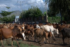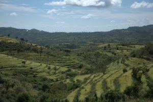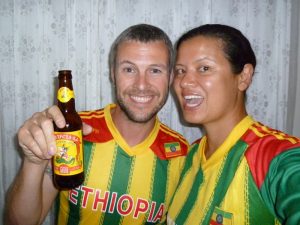 16 Nov: We were up early in search of breakfast before our 8 am meeting with Bisrat. Luckily, the main street just around the corner from our guesthouse had several restaurants, and we found a nice coffee bar to have a breakfast of scrambled eggs and bread. Bisrat was waiting for us when we returned, but he begged off after a few minutes by saying he had some errands to run and would come back to pick us up. This gave us an excuse to pack our laundry which had ample time to dry during the night on the clothesline. When Bisrat finally returned, a hitchhiker was in the front seat. We were on a mission to exchange some money for brand new, smaller bills (1, 5 and 10 Birr notes) for the photography fees in Omo Valley. Other tourists had advised that some of the tribe members were super picky on accepting old, dirty or torn notes and were quite insistent on clean, new notes. A couple of banks refused to assist until we found one that was willing to issue a pack of 1000 brand new 1 Birr notes. It was impossible to get new 5 and 10 Birr notes but we did get a bunch of them and sorted them out from best to worst condition (spending the worst notes in bars and restaurants as they never refuse money!). Excitement was in the air today in Addis as a huge football match (Ethiopia vs Nigeria) was scheduled for later this afternoon. Bisrat surprised us by buying 2 football jerseys as a gift, which we wore with pride. This elicited enthusiastic reactions from the locals who were thrilled to see two Farangi wearing Ethiopian jerseys. Eventually, we met our driver for the upcoming week, a nice guy named Abenezer. Bisrat asked if we minded driving over to the Sheraton so Abenezer could drop off something important before our drive to Arba Minch and we agreed as we didn’t want to start our trip off on the wrong foot. Before departing, we finally had a sit-down with Bisrat and settled our mounting bill. We had estimated our costs of the domestic flights to be $450 ($160 each for a round trip from Addis – Mekele, $65 each for one way from Arba Minch – Addis) and our car hire/driver/fuel to be $1600 ($160 per day x 10 days in Omo Valley). It was only after we paid that Bisrat started mumbling some nonsense about the fact that we wouldn’t need a vehicle for the last day (day 10) of our tour as we were flying back to Addis. He mentioned hiring a private minivan to take us around. When we didn’t commit, he then started suggesting that we could squeeze everything in the Omo Valley in 7 days and still have enough time to drive back up to Addis, forgoing the domestic flight that we had already paid for! We weren’t even taking his halfhearted suggestions seriously as we had already paid for services that we expected to be rendered. We both thought it was idiotic to try to change our itinerary at the last minute to suit Bisrat’s agenda. Later we would find out that we should have been more firm in our discussions, as Abenezer informed us that he was an independent contractor and had only been hired for 9 days total. But, there is more to follow on that later. Driving in Addis is a bit chaotic. Abenezer’s slight detour to the Sheraton set us back by an hour…we hadn’t realized how far away it was from our departure point. However, finally by midday, we were on our way! About 2 hours out of Addis, Abenezer pulled over at a popular rest stop for lunch. It appeared that every single other Farangi tourist heading south to Arba Minch had also stopped here for lunch! The food was good and reasonably priced, and the toilets were clean so who were we to complain? From here, it was a long, scenic drive down to Arba Minch. We saw lots of circular, wooden/clay huts which caught our eye but were driving way too fast to take any decent photos. Closer to Arba Minch, cattle overtook the road and our speed decreased significantly. Abenezer pointed out Lake Abaya in the distance and said we would get to our destination soon. Driving on the road was quite challenging with our constant maneuvering around cows and goats, with many refusing to budge out of the way. It was dark by the time we reached Arba Minch and Abenezer was curious if we had booked a hotel for the night? We told him we were extremely flexible, but wanted a room with hot water and power. After several phone calls to determine that our first choice hotels were fully booked, we settled on the Tourist Hotel (396 Birr) which came with hot water, Wi-Fi, and a massive room. The football match was ongoing when we checked in, and a crowd had gathered at the bar. Robby had a beer delivered to the room while we watched as Nigeria bested Ethiopia 2-0. That night, we heard the faint squeaks of a rat/mouse as it frantically ran around our room trying to chew through plastic bags. The only thing it got to nibble on was a bit of toilet paper and baby wipes! It was a bit off putting and we realized that we should leave our main bags in the car from now on and simply carry a change of clothes and toiletries for each overnight stay to prevent our belongings from being rifled through by a mouse.