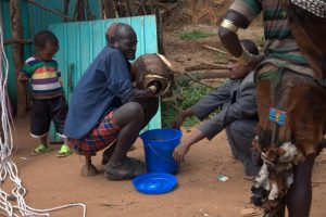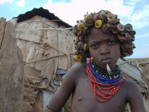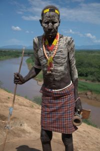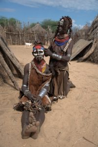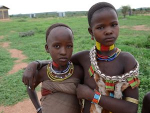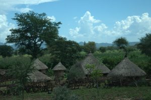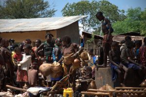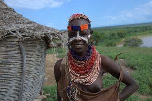 18 Nov: After a restful night’s sleep, we were up early. Our camping accommodations in Turmi were unexpectedly good! By 7 am, we headed over to the restaurant area for breakfast which consisted of oatmeal, undercooked pancakes, sliced boiled eggs, fried dough balls, sliced bread, tea and a nice orange/banana juice mix. The laundry we had washed and hung on our line the night before was still damp so we made the decision to leave it out to dry all day. Abenezer showed up promptly at 8 am with the news that we had missed a bull jumping ceremony yesterday in Dimeka. Gutted! We really wanted to see one of those and were a bit perturbed that we probably wouldn’t have another opportunity while in the Omo Valley. This morning, we were to drive out to Kolcho Village to see the smallest of the Omo tribes, the Karo tribe (their numbers have dwindled to about 1500 tribe members). Famous for their body paint, the Karo tribe is an “easy” introduction for tourists as they are not as aggressive as some of the other tribes in demanding photos. Kolcho Village is one of the most popular stops for tourists as it commands a high vantage point overlooking the Omo River, making for a scenic backdrop. The drive took about two hours, and along the way, we stopped for a photo next to the “Burj Khalifa” of termite hills. A Hamer boy was strolling past with his cattle, and he curiously watched as we took photos next to the termite mound (probably thinking tourists are a bit crazy!). Robby had devised a way to strap a GoPro to his backpack as an inconspicuous way of recording our village visits and he got to try out his contraption for the first time at Kolcho Village. Thankfully, our guidebook was correct in predicting that the Karo would be mellower than other tribes at demanding photos, and we appreciated this as it was a gentle ease into the sometimes uncomfortable territory of taking portraits of strangers. The going rate per individual was from 2 – 3 Birr, although some of the “models” would want 5 Birr if they posed for an extra long time or saw that we were taking multiple photos. Unlike what we were led to believe, they weren’t counting each click of our camera! We were grateful for our new, clean 1 Birr notes as it made it quite easy to settle the camera fees. The cost to visit Kolcho came out to 550 Birr (vehicle, guide and entrance fees paid directly to a village representative). Even though we had only taken photos of about 10 villagers each, we felt that a visit here was worthwhile. The sky was threatening to downpour with rain, and Abenezer was fretting that we wouldn’t be able to make the river crossing in time before it became flooded. Luckily, we made it in time but the other tourists who were just pulling up to Kolcho as we were leaving probably weren’t as fortunate. Abenezer explained that once the river bed filled up with water, it was a waiting game as none of the drivers were willing to attempt a river crossing as lives has been lost in the past during such attempts. After crossing the river bank, the rain came down torrentially. We were a bit concerned as this afternoon we had planned on visiting the Turmi Monday market (one of the best in the region), and Abenezer thought that many of the Hamer who normally visit the market would stay home because of the rain. However, by the time we finally reached Turmi, the rain had subsided. Abenezer recommended that we visit the market before lunch, and we agreed. Since this was our first market visit in the Omo Valley, we thought it was pretty spectacular. Tourists were driven away because of the rain, and the market itself was full of Hamer and Bashada tribe members. Abenezer said that the market was not as busy as it usually was, but that didn’t deter us any. We each went our separate ways to explore and for some reason, Robby ended up with a local “guide” who latched on to him the entire time. Meanwhile, Becky was having a blast taking photos on her own, awestruck by the beautiful Hamer women and the colorful market scenes. Truly brilliant! We linked up again after 45 minutes and showed each other our favorite sections of the market. Robby’s guide was trying to convince him to buy him a dictionary for 250 Birr (does that scam work on anyone?), but in the end accepted a tip of 40 Birr for his services rendered. Back at Turmi Lodge, we had lunch of steak sandwiches which were pretty tasty. On the menu, we discovered the nasty surprise of the inflated prices we were being charged for the buffet breakfast and dinner (we had no say in the matter when first offered the buffet as our dining option), so after the sticker shock, we were determined to order off the menu for our remaining meals. Since the only other thing we had planned for later that afternoon was a visit to a nearby Hamer village, we rested until 4 pm, when Abenezer returned with a local Hamer guide to escort us in the village. Poor Abenezer had been busy since he dropped us off for lunch. Our 4×4 had a flat tire that Abenezer had spent several hours dealing with but that was all sorted out before our afternoon excursion. The visit to the Hamer village (400 Birr total – 200 Birr local guide and 100 Birr each village fee) was a bit anticlimactic after the Turmi market today. We saw the Hamer in a natural environment at the market, and the village visit felt way too posed. Plus there were throngs of tourists in the village, and the tribe was competing for their photographs. It really did feel like a human zoo and we tried our best to walk around avoiding the other tour groups. Our Hamer guide actually didn’t hail from this village, and we wondered how that would affect our tour as the guides are supposed to be from the village we are visiting. Our worries were founded as an ugly scene unfolded before our very eyes. Unbeknownst to our guide, Robby had taken a photo of a baby camel that the Ethiopian government had given to the village. This was a harmless a