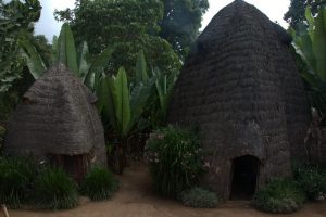 24 Nov: We were up just before 7 am. Robby had discovered free Wi-Fi the night before, and it was nice to catch up on email. Breakfast was a measly buffet. Earlier that morning, the larger tour groups had invaded like a swarm of locusts and devoured everything in sight, so we were left with the morsels of scraps that remained. After breakfast, we finalized our packing and met up with a well-rested Abenezer at 8 am. The only agenda we had today was to visit the Dorze village, famous for their beehive shaped huts that are nestled in the highlands overlooking Arba Minch, Lake Chamo and Lake Abaya. It was a leisurely drive as we weaved in and out of the morning traffic and cattle. Abenezer was far more relaxed today, as we weren’t in a rush to cover a great distance. Halfway up the mountain, we pulled over for a photo stop. In the distance, we could see Lake Chamo and Lake Abaya, with the mountainous “bridge of God” in the middle. Due to its elevation, Dorze village is indeed much cooler than Arba Minch. As we neared the village, the tall beehive shaped huts started appearing more and more frequently. A Dorze guide met us and gave us a brief explanation of why the huts are built in the shape of an elephant head (elephants used to roam this area a long time ago). He ushered us into one of the huts and explained the setup. The Dorze live quite simply with their animals and children safely secure within the confines of their hut. The cattle are segmented off on one side of the hut, while the children occupy “bunk beds” on the other side. The center is reserved for cooking and eating. All the huts are built with extremely tall sides and a high roof because termites eat the bottom and the huts become shorter over time. After exiting the Dorze hut, we saw how the Dorze rely heavily upon the false banana trees (plentiful in this area) on a daily basis. A woman demonstrated how to spin cotton and Becky was pressured to follow suit (failing miserably). Another Dorze woman showed us how to make ensete (false banana) fiber rich pancakes. She demonstrated how to scrape chucks off the false banana tree trunk. Then she used the fibers to form dough that is put in the ground for a few months to ferment. After fermentation, the dough is kneaded, cut and flattened into a big pancake, cooked and eaten with honey and chili sauce. Adjacent to this Dorze house was the lovely Dorze Lodge, which had several guest rooms built in the traditional beehive style. The Dorze are famous weavers, and there was a massive selection of hand woven scarves, tablecloths, pillows and bed covers for sale. Robby tried on a leopard skin outfit, complete with a rhino shield and spear that is used nightly in performances put on for the tourists at the lodge. After that, our guide had us sample the ensete (an acquired taste) and gulp down araki, 45% alcohol. It was a bit too early in the morning for the araki (made from fermented sorghum, honey and garlic), but despite our protests, we had to down several shot glasses of the brew. After the village visit we drove back to Arba Minch for lunch at the Tourist Hotel. Our meals were quite tasty, quite possibly the best on our trip thus far. Robby enjoyed the fish goulash while Becky had steak with garlic butter (yum). Abenezer was fretful that we still had too much time to kill at the airport before our afternoon flight, so he offered to take us up to the Paradise Lodge for a drink. What a slice of paradise! We really liked this lodge. The materials used in its construction, the million dollar views…if ever there was a place to splurge in Arba Minch, this would be it! We hung out here for about an hour on the terrace overlooking both lakes. It was easy to see the differences in the two lakes with Lake Abaya’s brown/reddish brown hue in contrast to Lake Chamo’s blue tint. Abenezer was still a bit reluctant to drop us off too early at the airport but we insisted, as both of us had ebooks we could read while waiting to board our flight from Arba Minch to Addis. We thanked Abenezer for being an excellent driver and gave him a good tip (ridding ourselves of the excess 1 Birr notes in the process). With a couple of hours to kill, we hung outside the airport until the staff arrived to unlock the doors. We were the first in line for the security check which was actually quite stringent as every belonging was unpacked and inspected. Not sure if this is normal in Ethiopia but what a pain in the butt considering we had both our check in and carry-on luggage for the staff to rifle through. After getting our boarding passes, we had to go through yet another security check where our carry-on luggage was again rummaged through. Talk about overkill! We have never been inspected that thoroughly at an airport before. Our flight from Arba Minch to Addis was delayed slightly and we were a bit nervous about on onward flight from Addis to Dubai but needn’t have worried as the FlyDubai flight had been delayed by 30 minutes. In Addis, Robby linked up with Bisrat to return the cell phone he had let us borrow at the beginning of the Omo Valley trip, as well as the leftover gasoline money (we had been responsible for collecting receipts and paying for our own gas…unsure of why Abenezer wasn’t trusted with that responsibility but it was no big deal). The FlyDubai flight from Addis to Dubai was less than half full, so we both managed to lounge out across three of the emergency exit seats to get a few hours of sleep. Ethiopia had exhausted, exhilarated, annoyed, thrilled, saddened and wowed us continually for over 2 weeks. We were both wiped from this trip but what amazing memories! Ethiopia never fails to impress.