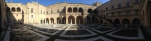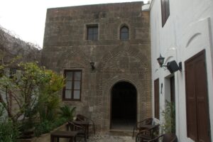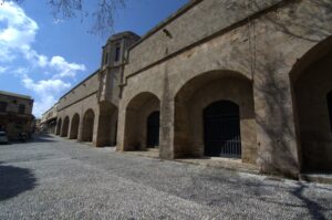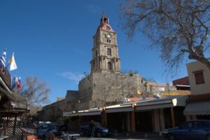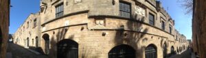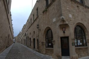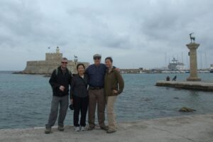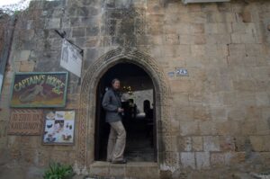 23 Mar: Touchdown in Rhodes Diagoras airport at 7pm…we were happy to be here after being stuck in the Athens airport for the majority of the day, especially considering that our original flight was supposed to have landed at 2:20pm. Taxi fare from the airport to Rhodes Town is supposed to be 22 Euro and the very first taxi driver quoted us the correct fare so we loaded up and hopped in for the 16km ride. Our boutique hotel, Evdokia, had suggested that we ask the taxi to drop us off at Socratous Str. The medieval walled city of Rhodes quickened our pulses as we approached in the dark…sections of the wall were lit up at night and created the perfect ambiance. We entered the city through the Marine Gate (in front of the commercial harbor) and were immediately enthralled. Old Rhodes definitely knows how to make a first impression! Thanks to Google Earth, we were able to easily find our hotel (Evdokia, 75 Evdoxou Street)…without it we definitely would have become hopelessly lost within Rhodes’ labyrinth streets. The downstairs door to Evdokia was propped open, and the owner, a super friendly guy named Savvas, welcomed us warmly. Evdokia Boutique hotel is smack dab in the center of old Rhodes, and it has been tastefully restored. The original building was erected in the 19th century, and strict building codes must be adhered to in the old city. As a result, the rooms are built around a shared lounge area. Savvas told us that since it was still off-season, there was only one other room that was currently occupied but basically we had the entire place to ourselves. Bob and Ann were shown to their room, and Savvas generously offered for them to take either (or both) of the twin rooms located adjacent to each other in case they wanted to sleep separately. Our room was a spacious double with a compact bathroom…throw in free wifi and Evdokia was the perfect choice for our 3 night stay. Savvas gave us a quick overview of Rhodes (and the rest of the island), provided a map, gave us insight as to the best places to eat and what to see/do, and told us where to be for the Independence Day parade in a few days. Since we were all craving a gyros for dinner, we asked Savvas where the best place within walking distance was and he recommended Augustinos, located outside the city walls. The restaurant was easy to find, packed with locals and we were happy campers in just a few minutes with massive gyros sandwiches served up with Alfa beer…perfect! The walk around Rhodes at night heightened our excitement at exploring the city; we longed for daylight hours so we could thoroughly check it out. Back at Evdokia, we discovered that our room no longer had power. After trying fruitlessly to call Savvas, we just crashed in the twin room adjacent to Bob/Ann. Thank goodness Savvas had offered up both rooms for them to use!