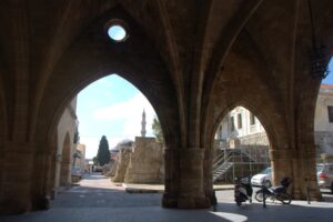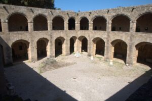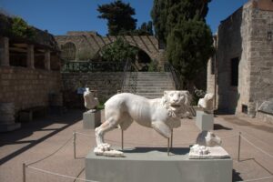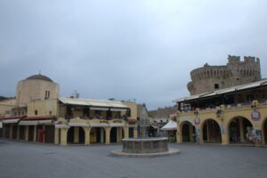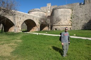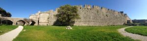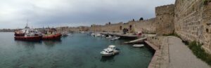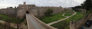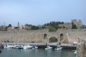 24 Mar: We had a full day to explore medieval Rhodes city. After having breakfast in the common lounge area, we packed a picnic and ran into Savvas as we headed out for the day. After telling him about the power outage in our original room, he said he would fix it and recommended that we move back into our room when we got back later that day. We deferred since it was no big deal to stay in a smaller room but he insisted, stating it would be no problem for him at all and he wanted to make sure we were comfortable. We climbed up Sokratous street (Old Rhodes’ “main” street) towards the pink domed Mosque of Süleyman. From there we should have cut to the right to visit the Palace of the Grand Masters, but since we really didn’t know where the main entrance was, we wandered about the labyrinth streets of the Knights’ Quarter (where most of Old Rhodes medieval historical sights are located), and admired the 12m thick city walls of the city. According to our guidebook, the Old Town of Rhodes is the oldest inhabited medieval town in Europe. Even though we were hopelessly disorientated, there were fantastic views of the city in every direction. Eventually, we made it back to the main entrance of the Palace of the Grand Masters (6 Euros each) and we were thrilled to find out that we were the first tourists of the day! Becky inquired if the wall-walk tour was offered in the off-season, and we were disappointed (but not surprised) to find out that the program is only run during the peak season (a 1 hour tour of the city’s walls on Tuesdays and Saturdays at 3 pm, entrance from the Palace of the Knights. The guided tour is the only way to get a very different perspective of the city’s defensive walls and moats from the vantage point of the knights tasked to defend Old Rhodes from attack). The 14th century Palace of the Knights is a medieval castle, occupying the highest spot in this city. It was previously a citadel of the Knights Hospitaller, functioning as a fortress, palace and headquarters. Today, it has been converted to a museum and is usually invaded by hordes of tourists. Imagine our luck to have the entire place to ourselves! Immediately after entering the palace we were staring in wonder at the Gothic arcades and the checkered courtyard. Marble statues erected in the portals stood guard in the courtyard. Afterwards, we climbed up the stairs to the second floor of the palace, easily imagining the grandeur of the palace in its heyday. Surprisingly, there was no one monitoring our visit and we had free reign of the palatial rooms, many of which had beautiful floor mosaics. We spent the greater part of an hour here, thoroughly enjoying our visit. Towards the very end, a large group of young school children on a field trip caught up to us, but that was it in terms of visitors. Off season is definitely the time to visit Rhodes! From the Palace of the Grand Masters, we strolled down Ippoton, more commonly known as the “Street of the Knights”. This 600m cobblestoned street was built over an ancient path leading in a straight line from the Acropolis of Rhodes to the port. In the 16th century, the street was bordered on both sides by the Inns of the Tongues (each nation had their own inn for their respective knights, and the inns were used as eating clubs, meeting halls, and temporary residences for visiting dignitaries). At the very end of Ippoton Street, we ran into the old Hospital of the Knights, one of Old Rhodes’ largest medieval buildings. Built in 1440 by the Grand Master d’Aubusson, and completed a mere 49 year later, the hospital today houses the city’s Archaeological Museum (6 Euros each). On the first level, we were greeted by a seated marble lion and large stone cannon balls built into pyramids. But the real gems were on the second floor of this excellent museum. From medieval tombstones to sarcophagi, countless sculptures, statues, figurines, coins, mosaics, and clay pots are strewn throughout. Notable standouts include the bathing Aphrodite, a 5th century grave stele of Krito and Timarista, and the 2nd century head of Helios. Utterly engrossed, the four of us spent hours doing our own thing before reuniting in the gardens next to the mosaic wall displays. There, we had a lunch picnic while soaking up the warm rays of sunshine. Fantastic morning so far! After lunch, we decided to head towards Mandraki Harbor, which used to serve as the city’s main harbor and has been in use since the 5th century! The Colossus of Rhodes (one of the seven wonders of the ancient world) once stood at the mouth of the harbor, but today statues of a male and female deer (Elafos & Elafina) greet arriving visitors. To get to Mandraki, we first strolled past three 14th century windmills (all that remains of the original 14 medieval windmills which used to grind wheat at the end of the pier). A squat, circular 15th century fortress of Saint Nicholas stands guard at the edge of the pier. It was closed due to renovations. Today, Mandraki Harbor is a marina full of luxury yachts, cruisers, hydrofoils and catamarans. Just across the harbor stands Evangelismos Church, the town’s cathedral. Built in the 1920s, this Italian built replica of Knights Church of St John in the Old Town dominates the harbor. Since we weren’t able to do the medieval wall tour, we opted to circumambulate the massive moat surrounding the city’s medieval walls. Only problem was, we didn’t know which point of access to enter from. A nearby tourist information office was quite helpful, providing a city map and showing us that we were just feet away from one of the access points. One of the staff also kindly looked up the phone number to our car rental (Marathon Rent-A-Car), since tomorrow was Independence Day and we weren’t sure what time to link up for our car. A quick phone call to Marathon confirmed that they would be closed tomorrow but open again at 9am the next day. One of the staff would drop the compact 