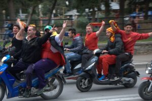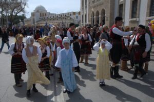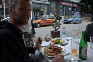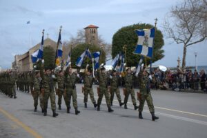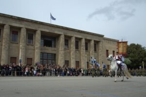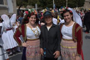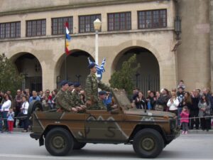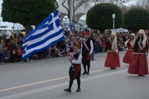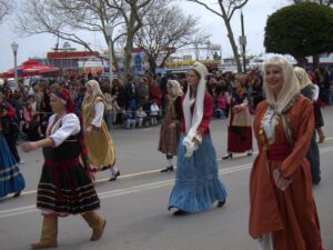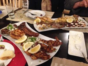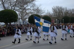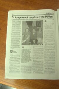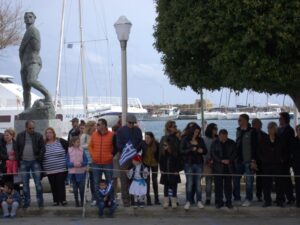 25 Mar: Happy Greek Independence Day!! We slept in until 8am before getting up for breakfast. Savvas told us the best place to be for the Independence Day parade was in the New Town area by the harbor (near City Hall). We had seen the New Town area from our walk to Mandraki Harbor the day before, with the main street full of buildings erected during the Italian occupation. Hence the strong Italian influence on the architecture (Art Deco, Neoclassical), specifically seen at the City Hall, Post Office, National Theater, Governor’s Palace. A sizeable crowd was already gathering in the streets, and we hurriedly made our way over towards the City Hall to grab a good spot for the parade. It was lovely seeing so many locals dressed in traditional costumes as they celebrated Greek Independence Day! Greek flags galore were being waved in the air, and an aura of cheer and excitement filled the harbor front. The energy of the crowd was palpable, and the weather couldn’t have been more perfect. The wide variety of traditional Greek costumes caught our eye and everyone happily posed for photos. We took dozens of pre-parade photos before grabbing a spot by the roadside to wait for the start of the official ceremony. Scanning the crowd, it is evident that Greek pride is strong, from the young to the old. It was amazing seeing little kids proudly waving the Greek colors and the throngs of spectators forming up to watch the annual parade. What a huge turnout! Happy with our vantage points, we enjoyed the hour long parade as group after group proudly marched past. The first third of the parade were groups wearing traditional Greek outfits…beautiful colors and designs! The second third consisted of groups of school children dressed in their smart uniforms marching in unison, while the last third of the parade included military personnel. Overall, it was a fantastic parade and we felt so privileged to be able to witness the pride and joy exuded from everyone marching in the Independence Day event. Two thumbs up for Rhodes’ parade! Bob was invited to join a family’s post-parade BBQ, but we respectfully declined, not wanting to take advantage of their hospitality. Instead, we mingled with the revelers in the street before we finally decided to head back to Augustinos for their giant gyros platters. On our way there, we stumbled upon an open supermarket (well, technically it wasn’t open for business yet, but the owner who was doing inventory kindly invited us in). Here, we loaded up on some wine, beer, radlers and postcards. The wait staff at Augustinos was as friendly as ever, and they piled our plates high with food even though we really just wanted gyros sandwiches. The owner of the restaurant came out to personally greet us, and the meat carver from the previous night brought out a complimentary platter of chicken gyros, and our waiter served up a free dessert concoction of dough smothered in chocolate. The food was excellent and we left feeling completely stuffed. Bob and Ann were keen on heading back to the hotel, but we decided to keep on wandering, walking along the outside moat wall to get some unique views of Old Rhodes. Soccer fans were gearing up for a game at the stadium, and we could hear all the excitement from far away. Too bad we didn’t have tickets to the game…the energy of the crowd was fantastic. Instead, we stopped by a kiosk to pick up some drinks and decided to hike up to the acropolis of Rhodes on Monte Smith (St Stephen’s Hill). Located just above the New Town, there are actually a few remnants to check out, the 3rd century stadium, a small theater, and the remaining columns of the Temple of Pythian Apollo. Since access to the acropolis is free, we expected more visitors but the weather took a turn for the worse and it appeared we were the only two foolhardy souls out for a hike today. When the rain started coming down with some force, we sought refuge beneath a shady tree while we downed our drinks, waiting for the rain to relent a bit. The ruins of the acropolis are worth a cursory visit, but it didn’t take us long to explore so we returned back to the outer moat wall and continued on to the waterfront where we got some nice shots of Rhodes. Back at the hotel, we met Evdokia (Savvas’ wife) who was going to be doing an interview with a local reporter about her cake decorating business. She had brought by several samples and happily chatted us up while we waited for the reporter to arrive. Once the reporter arrived, we made ourselves scarce as we didn’t want to be in Evdokia’s way. Instead, we went up to the rooftop terrace for some amazing sunset photos overlooking the old town. Afterwards, we hung out in our room and had a couple of drinks before getting a knock on our door. Evdokia said that the reporter was keen to interview her American guests and would we mind answering some questions? Of course not, and we managed to get Bob and Ann in on the action too, ha ha. We felt a bit bad because it felt like we had hijacked Evdokia’s interview (it was supposed to be about her cake decorating business, not what a bunch of Americans thought of Greece and Rhodes). The reporter took tons of notes and we drank the night away, as Savvas had broken out the good wine again and was keeping us topped off. We were told to check for the newspaper on Friday (printable version), with an online edition coming out over the weekend, and to use google translate since the entire article would be in Greek…how awesome! Bob was particularly proud of his answer for the city to reconstruct the Colossus of Rhodes in order to lure visitors in 365 days a year. The hotel had one other guest arriving for the night, an older British traveler named Joe. He was greeted, shown to his room and invited to partake in the wine and chocolate cake…what a reception, ha. Once Savvas broke out the souma, we knew it wasn’t going to be an early night so we stayed up at chatted for a few hours, get