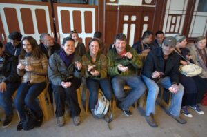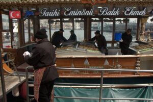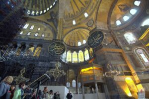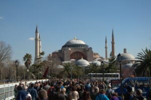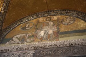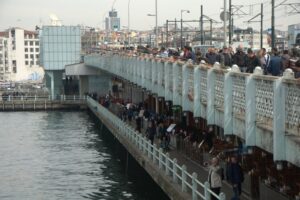 4 Apr: Despite a slight hangover, we were all up early for breakfast at 7:30am. The reason why we were reluctant to sleep in? We wanted to visit Istanbul’s most popular tourist attraction, the amazing Hagia Sophia. Prior to visiting, Bob had urged us to watch PBS NOVA’s documentary of the museum entitled “Hagia Sophia: Istanbul’s Ancient Mystery”. We were fascinated to learn that the Hagia Sophia stands in the middle of a seismic fault, and has withstood centuries of earthquakes. For over 800 years, it was the largest building in the world. According to the documentary, Hagia Sophia is so large that the statue of liberty can fit beneath the central dome with room to spare! Ichi showed us a short cut route from our apartment to the Hagia Sophia that was *much* easier than hiking up the steep hill to the Cemberlitas tram stop. None of us could figure out how she discovered this, but it earned her the new moniker of “GPS”. Way to go Ichi! Our lungs and thighs thanked her profusely when we reached Hagia Sophia with minimal physical exertion. We were shocked to see well over 1000 people in line queuing up at the ticket booth to the museum. WTF? It was only 9am (opening time) and we were shocked to see the insanely long line. Apparently, Hagia Sophia draws well over 25,000 visitors on a daily basis and is always crowded. With our museum passes in hand, we felt like rock stars as we cut all those tourists patiently waiting in the queue. It felt like we were all VIP, bypassing the line while getting incredulous looks from the poor saps who still had to wait hours to enter. Everyone wholeheartedly agreed that experience alone was worth getting the museum pass! Giggling with glee, we counted our blessings and entered the Hagia Sophia. This phenomenal building has transformed itself over the years. From 537 till 1453, it functioned as an Eastern Orthodox Cathedral. When Constantinople fell to the Ottoman Empire in May of 1453, the Hagia Sophia was desecrated and pillaged by the invaders, who also raped the women and children who had sought refuge there. Then from 1453 until 1931, it became an Imperial Mosque. On 1 February 1935, the building was reopened as a museum, and even today the Hagia Sophia lures in tourists by the thousands, receiving well over 3 million visitors annually. Unfortunately, the interior of the building was undergoing renovations with ugly scaffolding blocking off a third of the museum. However, we were still quite impressed with the massive dome, detailed mosaics (second floor), and breathtaking architecture. Even though we had visited 15 years prior, neither of us could remember much about our visit. We were definitely impressed today though and took numerous photos of Istanbul’s “must see” sight. On the first floor, Robby and Kendra discovered they could trick other tourists into mimicking their behavior. A massive serpent coiled around a basin set the stage. First Robby went up and started stroking the serpent’s head several times. Then Kendra followed suit. Followed by Ichi and then Becky. We laughed hysterically as a line formed up with random tourists waiting to do the same thing!! Aaah, we can be evilly mischievous. After our visit to Hagia Sophia, we figured we could hop in real quick to see the Blue Mosque. However, there was nothing “real quick” about it. A massive queue had formed up and none of us were keen to wait in line to visit a mosque! So we decided to get the most out of our museum pass and visited the nearby Mosaic Museum. Becky and Ichi were impressed with the detailed mosaics, especially the basket laden monkey using a pole to pick dates. However, poor Kendra, George and Francisco were not impressed, waiting patiently for the visit to end. Since it was a small museum, they didn’t have to wait too long. After our sightseeing filled morning, it was time for lunch. Since everyone enjoyed yesterday’s meal, we went back to what we dubbed our favorite Istanbul lunch spot, the excellent Degirmencioglu cafeteria. There, we stuffed ourselves silly on soups, chicken, salad and dessert. Yum! After lunch, we revisited the Sultan Mahmut II mausoleum and cemetery. This time, the mausoleum was still open and we were able to visit for free. Interestingly, the caskets within the mausoleum are empty. Caskets adorned with hats were designated for men and the caskets with flowers signified they were for women. Afterwards, the group decided to split up. Kendra, George and Francisco were keen on a nap, while the rest of us wanted to climb up the Galata Tower. Thankfully we now had two sets of keys, so splitting up was no problem. We hopped on the tram with Ichiyo and hopped off at the Galata Tower stop. There was still an uphill hike to contend with and once we reached the base of Galata Tower, we discovered to our dismay that a long line of tourists was ahead of us. Istanbul is crazy popular with tourists…every single place was full of them! Reluctantly, we joined the queue as we really wanted to check out the vantage point from the top of the tower. Despite the sunny day, we started shivering while in the shadow of the tower. Once we reached the sunny spots however, it was a comfortable wait. It took about an hour to reach the ticket booth where we discovered a hefty 25 TL entrance fee. An elevator whisked us up to the top of the tower, and then we had to climb a flight of stairs to reach the café portion which had an outdoor balcony offering fantastic 360 degree views of Istanbul. Once out on the platform, we had as much time as we wanted to take photos, with everyone moving in a clockwise manner around the circumference of the tower. The views were amazing despite the hefty fee. After our visit to the tower, we decided to hike back across the Galata Bridge (which spans the Golden Horn). Entrepreneurial fishermen were grilling fish sandwiches for sale (6 TL each) and there were hundreds of fishermen lined up on both sides of the bridge. Res