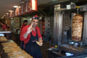 07 Apr: We were up by 8am from some brekkie. Francisco was leaving us today, boohoo! Since he had been sharing the tram card with Kendra & George, they graciously told him to keep it for his return trip back to the airport. We walked with him to the Sultanahmet tram stop before reluctantly hugging him goodbye. From Sultanahmet we walked towards Cemberlitas and got a second chance to wave goodbye to Francisco as his tram zipped by. From Cemberlitas, we made our way to the Grand Bazaar as it was shopping time! Kendra and George wanted a shisha/hookah pipe, and Robby wanted to buy something for his cousin so into the labyrinth shopping complex we ventured for a second time. Ichi wasn’t interested in buying anything but she kept us company as we wandered around the market. Within no time, our shopping was complete. We exited out a different section of the bazaar and got lost in Istanbul’s back streets. Loads of mannequins were on display at every single storefront, and the streets were full of residents going about their daily business. Eventually, we stumbled upon Sirkeci quarter of the Fatih district, dotted with impressive architectural specimens such as the Art Nouveau Deutsche Orient Bank and the Istanbul Grand Post Office. A popular local cafeteria caught our eye, so we joined the queue to order lunch. The mystery meat we selected ended up being liver which neither of us cares for…Ichi ended up with the entire plate! At least our beef and mushroom and chickpea soup kept us satisfied. After lunch, we strolled up Alemdar Caddesi where several restaurants were showcasing their employees making fresh bread…great advertising! One of the workers was preparing spinach and feta gozleme. It was entertaining watching her through the window and the clientele appeared to be enjoying their meals. When we reached Sultan Ahmet Park, the tulips were in full bloom! What a beautiful sight. Back at the apartment, we took a short siesta before packing for the return trip back to work. Since we still had a few hours to kill, we started beer-thirty. After downing a couple, we went back to our favorite doner place for chicken doners (bargain priced at 5 TL each). Once again, we were offered a free cup of tea which we happily accepted. Our time in Istanbul quickly dwindled down as the clock approached midnight. We sat and chatted with Ichiyo, Kendra and George until 10:30pm. Since we were trying to take public transportation back to the airport and the tram/metro stops running once the clock strikes midnight, we were under a slight time crunch. Since Ichiyo was planning on spending a few more days in Istanbul, she would be the last one to leave the apartment and Kadir’s instructions were to just leave the keys inside the apartment when the last person checked out. It was a sad moment as we said our goodbyes to the group…we can’t wait for the next reunion! The ride to the airport was smooth and we were able to check in straight away, scoring exit seats. While waiting to board the flight at our gate, we noticed a huge commotion. An Afghan woman was screaming, wailing, slapping herself, pulling out her hair and verbally abusing all the men who tried to intervene. It made for an extremely uncomfortable wait as it was obvious that she had just been given some devastating news. Nothing and no one could placate her. Finally, the family had to resort to calling for medical assistance and she was given a sedative that eventually calmed her down. We hoped that she would be knocked out for the duration of the flight! The flight back to Kabul was a breeze and vacation was officially over. What an awesome adventure!