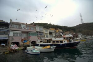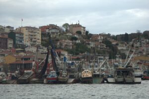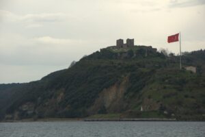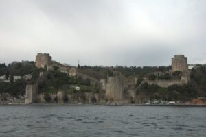 6 Apr: We got up around 7:30am and had a slow breakfast of leftover doners. Today we were going to take a Bosphorus cruise! Since the cruise didn’t leave until 10:35am from Eminonu, we had plenty of time to get ready for the day. Kendra and George needed more Lira, and we remembered there were a few money changers at the Sultanahmet stop so we decided to walk there. While they were hunting for the best exchange rates, Robby realized that we had excess Liras, so he offered to do the exchange for them…problem solved! After hopping on a tram to Eminonu, we saw a long queue at the ferry ticket office and jumped in line. Thankfully, it was moving quickly and there were plenty of seats on the 6 hour Bosphorus Cruise. There were touts selling similar overpriced tours, but why pay a middle man commission when you can just buy your own ticket directly from the ferry terminal itself? One wonders how the touts make a living since this is fairly obvious to most Istanbul visitors. The Bosphorus cruise is one of Istanbul’s better bargains, for 25 TL you get a 6 hour cruise departing Eminonu at 10:35am and arriving at Anadolu Kavagi (a fishing village with great seafood) approximately 90 minutes later. The ferry remains docked at Anadolu Kavagi for several hours which gives tourists enough time to hike up to the fortress remnants and grab a bite to eat at one of the many seafood restaurants tucked away in this quaint village. At 3pm, the ferry departs for a return trip to Eminonu. The ferry was quite full by the time we boarded, with most passengers opting for an outside bench for the best views. Since the weather was overcast and threatening to rain, we happily found benches inside so that we would be protected against the elements. The ferry left Eminonu at 10:35am sharp, and there were fantastic views as we pulled away from Istanbul. Highlights of the cruise were mostly on the European coastline of the Bosphorus strait, and they included vistas of the Dolmabahce Palace (the largest palace in Turkey), and 13th century fortress Rumeli Hisari (also known as the “Fortress of Europe”). The ferry seemed to pause briefly so that everyone could take in the massive stone fortress of Rumeli Hisari with its three imposing towers rising from the riverbank of the Bosphorus. Tea was served on board the ferry (1 TL), and it was a smooth ride to Anadolu Kavagi. The weather that threatened to turn on us all morning long finally did, and it started drizzling as we arrived to the fishing village to start the land based portion of our excursion. Poor Francisco got extremely “lucky” as soon as we disembarked. One of the dozens of seagulls flying overhead took a massive crap on his black jacket! Good thing it was raining as that helped to wash the crap off, ha. Anadolu Kavagi is the last stop on the Asian side of the Bosphorus strait, and the ruined Byzantine castle of Yoros once stood guard at the confluence of the Bosphorus and the Black Sea. Despite its current decrepit state, this site is of extreme military importance, and indeed the Turkish military had blocked off huge swaths of land surrounding the castle. After our 25 minute hike up the steep hill, we were only allowed access to the outside of Yoros Castle. After posing for our obligatory photos, we quickly headed back down towards the village to search for lunch. The waterfront seafood restaurant proprietors were making strong sales pitches for our business, but we found an inexpensive local joint that appealed instead. Lunch was a satisfying combination of tea, chickpea soup, and chicken gyros…yum. Since it was still raining out, we decided to hang out in the restaurant until it was time to hop back on the ferry for our return trip to Istanbul at 3pm. We were able to snag benches to snooze on for the 90 minute journey, which passed by surprisingly quickly. From the pier at Eminonu, we hopped on a tram back to Sultanahmet where we made another attempt to visit the Blue Mosque, one of the last remaining touristy things to do. Unfortunately, our timing couldn’t have been worse as the mosque was closed due to the 5pm evening prayer. Francisco, Kendra and George opted to head back to the apartment, while Ichi decided to hang out with us to wait for the mosque to reopen. We didn’t have to wait too long as the attendant let us in 20 minutes earlier than the posted reopening time of 5:45pm. Despite the late hour, the mosque quickly became packed with tourists and we were glad we had a few minutes of peaceful solace before the large tour groups jammed into the mosque. After our visit, we stopped by a mini market to buy alcohol. Interestingly, the shopkeeper pulled out an official government sanctioned price list for us to do a quick price comparison. Of course we ended up buying the cheapest bottle of vodka, which set us back on 49 TL. Back at the apartment, we couldn’t get in at first. Our key appeared stuck and we were afraid of breaking it if we pushed much harder. George was on the other side of the door laughing at our predicament when suddenly the door unlocked. We blamed it on the new guests who had moved into the apartment upstairs…for some reason, they had started double locking the door on the main lock and the deadbolt, which was causing it to stick. Down in the basement, over some snacks and funny YouTube videos, we discovered that George was a bona fide reality show member, having been cast in a UK show called “Playing it Straight”. Of course we simply had to YouTube the first episode which we watched accompanied by fits of laughter! A real live celebrity amidst us! Too funny. Afterwards, we were on the quest for more booze as our sole bottle of vodka wasn’t lasting too long. Back at our favorite minimarket, we quickly determined that beer was the better value. Next, it was a return trip to our friendly neighborhood doner kebab stand. The owner quickly recognized us and invited us in for a free cup of tea while we waited for o