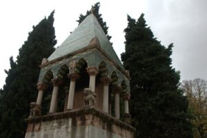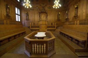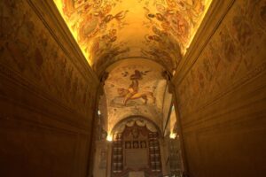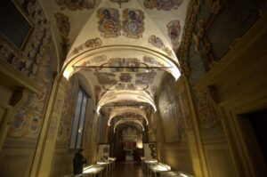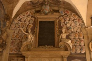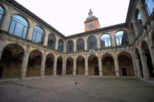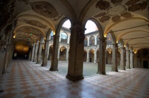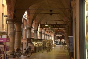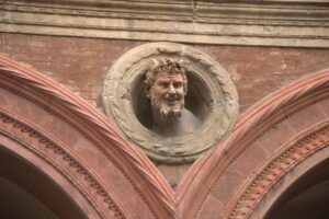 By this time, the Basilica of San Petronio had opened for visitors, so we quickly paid it a visit. Photos are allowed for a fee, so we tucked our cameras away. This church has been the site of not one but two terrorist attack attempts because of a 15th century fresco depicting the prophet Mohammed being devoured by demons. Luckily, Italian police managed to prevent both attacks. Afterwards, we checked out the Palazzo dell’Archiginnasio, which once served as the main building of Bologna’s university from 1563 to 1805. The Archiginnasio of Bologna is impressive with well over 7000 plaques from notable students and professors lining every square inch of the building (to include the ceilings!) There was an entry fee of 3 Euro to visit the fascinating 17th century Anatomy Theater (Teatro Anatomico). This was where trainee surgeons dissected humans and animals on a central marble table, while their peers watched from hard backed wooden seats (purposefully built to be as uncomfortable as possible to prevent students from falling asleep).