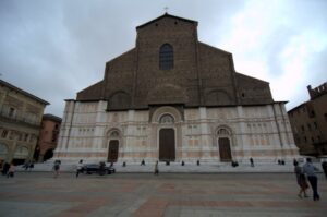 First stop was at the Basilica of San Francesco which was listed as a highlight on our map, but we didn’t find it to be anything special. Crossing the street, we entered Via Porta Nova which we thought would be a straight shot to Piazza Maggiore. However, we stumbled around Bologna’s back alleyways before finally finding the massive square. Piazza Maggiore immediately impressed, as imposing government, administrative and religious buildings surround it on all four sides. It was time for lunch, so we sat opposite the Basilica of San Petronio and broke out some sandwiches. Within seconds we were surrounded by resourceful pigeons looking for a handout. Needless to say, we ate quickly! Next stop was the Fountain of Neptune. Because of his massive size, the statue of Neptune is called “il Gigante” (the Giant). The artist commissioned with the project was of course at odds with the church when he declared his desire to equip Neptune with larger genitalia. The church forbade it, but the artist got the last laugh. He ended up designing the statue so that from a particular angle the thumb of the outstretched left hand lines up with the groin, making it look like an erect penis! Apparently, the women of Bologna were so taken by Neptune that the Church actually had bronze pants put on the statue, ha ha. The other thing to check out at the fountain are the “voluptuous nymphs” who spray water out from their nipples. Only in Bologna!
