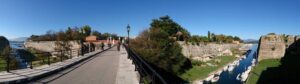 We had a full day to enjoy Corfu, a Greek island we’ve always wanted to visit! Unfortunately, to reach Corfu’s new port (Neo Limani), we had to hop on a tender. Of course priority was given to passengers who had booked official tours through Costa so we had to wait patiently for non-priority passengers to disembark. This essentially meant we were finally able to get off the cruise an hour later than the VIP passengers, but thankfully Corfu’s sights are centrally located in a relatively compact area. From the new port’s terminal, we walked to the public bus stop where we found out about the all day, unlimited rides bus pass for a mere 5 Euros each. Sign us up! We were dropped off at the square by the New Fortress.