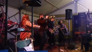 Enjoying some live music at the Slumbrew Beer Garden tent; Somerville, MA