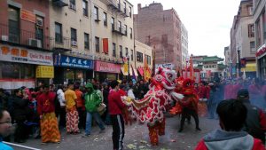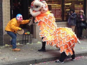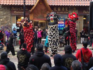 Three lions standing tall for the Chinese New Year in Chinatown; Boston, MA