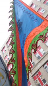 Colorful flag at Chinese New Year celebration; Boston; MA
