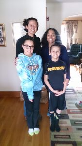 Becky with her college friend Tina and adorable children (Katie & Joe)
