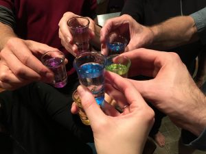 Robby, Therese, Tom, Greg, Becky and Jessie enjoy a shot of Mongolian vodka