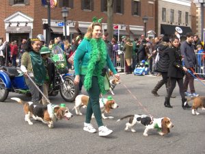 Beagles in the St Patrick's Day parade in Alexandria, VA