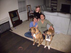 Ella, Kelly and Becky playing with the dogs; Chantilly, VA