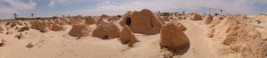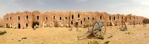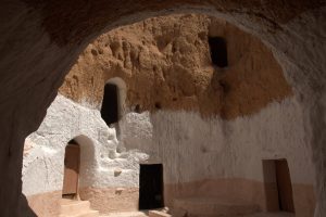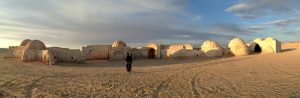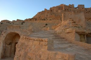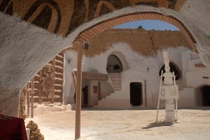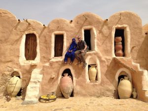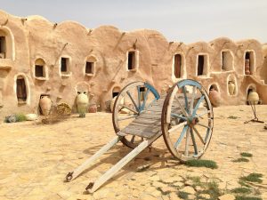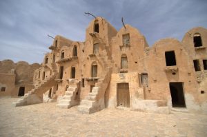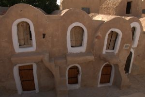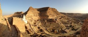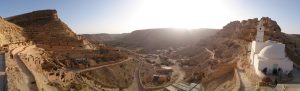 Tataouine (called “Tatouine” by the Berbers which means “many eyes” since the town is set in the midst of a hilltop with fantastic 360 degree views in all directions…hence the village was ideally suited to forewarn its inhabitants of any impending danger on the horizon.)