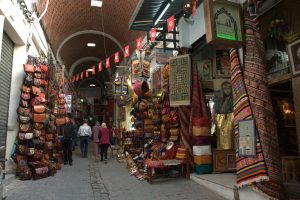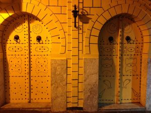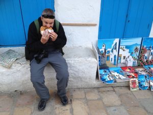 14 March: Our flight from Rome to Tunis was uneventful and we landed right on time at 11 am. Since we didn’t have any check-in luggage, and getting through passport control was a breeze, we quickly exited the arrival hall to find the owner of Dar Ya (the hostel we had booked for the next 3 nights for 45 Euros a night, incl breakfast and located near the medina of Tunis) waiting for us. Khaled was welcoming, and showed us the closest ATM so we could withdraw some money. We asked about the departure stamp (which we had read about online) but were told that it had only been for 2015, and had been discontinued this year. We still need to reverify that with a second source…hopefully that is true!
