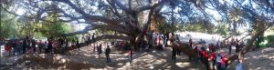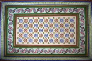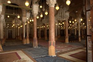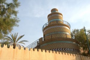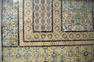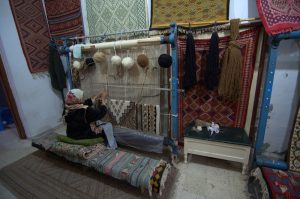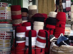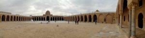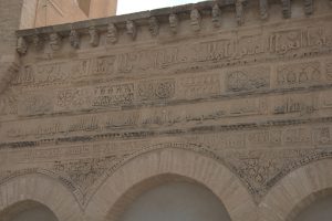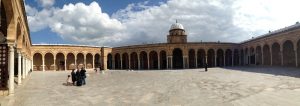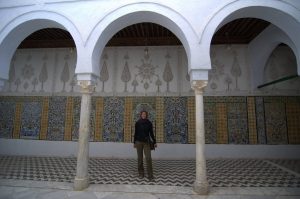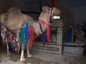 26 March: After checking out of the Hotel Medina (144 Dinar for 3 nights), we caught a taxi (2.3 Dinar) to the louage station and paid 4.8 Dinar each for a ride to Kairouan. We were the last 2 passengers to load up and of course were made to sit hump in the middle and rear rows of the van. Thankfully, the ride took less than an hour and we found out the louage station is about 1.5 km away from the medina. Rather than take yet another taxi, we decided to hike the distance to our hotel, Hotel Sabra just outside Place des Martyrs. At all the other hotels, a member of the staff could speak English but we had to resort to French and Arabic to communicate at the Hotel Sabra. Since we were early (10 am), we wanted to check into our room to drop off our bags so we could sightsee all day. The quote was overpriced at 40 Dinar for a double to include private hot water shower, but we weren’t in a position to negotiate. So we agreed, dropped off our stuff and immediately hit the rooftop for a panoramic view over the medina. Off in the distance, we could see the three tiered minaret of the Great Mosque, which was to be our first destination. Wandering through the medina was a bit chaotic as it was full of motorbikes, pedestrians and vendors but we made our way over to the Great Mosque where we were able to buy the multi-entry day pass for Kairouan’s main sights for 10 Dinar (plus 1 Dinar each for photography). Becky remembered visiting the Great Mosque over 20 years ago. Robby was Mr Popular with a rambunctious group of teenaged boys who fought each other to take a photo with him…hilarious. Kairouan is considered Islam’s 4th holiest city, and the Great Mosque has the distinction of being North Africa’s holiest Islam sight. The original version was built in AD 670 but it was destroyed. What stands today dates from the 9th century, built by the Aghlabids. The prayer room is closed to non-muslims but the doors are propped open for a peek inside. After taking photos to our hearts’ content, we brainstormed our next destination. The ticket sellers advised us to see the sights in the medina first, because they would all close by 2 pm. Our next destination was the poor camel at Bir Barouta, a circa 1676 well dug by the Ottoman ruler Mohammed Bey. Locals believe that the well waters are linked to the well of Zem Zem in Mecca. The poor camel walks around in circles all day pulling up water from the well and posing with tourists. Needless to say, this place is extremely popular with local tourists. Next up was the Mosque of the Three Doors, which is one of the few structures dating from the 19th century. Then we took a hike out to visit the Zaouia of Sidi Sahab (Mosque of the Barber), an intricate tomb complex of one of the Prophet’s companions who always carried 3 hairs of Mohammed with him everywhere he went (one under his tongue, one on his arm and the other closest to his heart). This zaouia was popular with locals, and we could easily see why with its beautiful blue and green tile work. From here, we walked over towards the Aghlabid Pools, stopping enroute at a fantastic grocery store Monoprix. There we scored a half roasted chicken, delicious wheat grain bread and water for under 5 Dinar. Our picnic lunch was awesome! The Aghlabid Pools really aren’t anything special to look at, but what a feat of engineering. Water from aqueducts almost 40 km to the west brought water to these massive pools (128 meters across by 5 meters deep). From here we hiked over to the Zaouia of Sidi Amor Abbada, which is noted for its 7 white cupolas. The occupant was a blacksmith who liked to supersize everything. His zaouia has been transformed into a museum showcasing the exaggerated objects he created. Kinda of a meh moment. Next up was to be the Zaouia of Sidi Abid-el-Ghariani but it was locked up for the day. Even though we had been promised it would stay open late, that was not the case at 2:30 pm. So instead we decided to take in a tour of the Maison du Gouverneur, the 18th century residence of the former Beys (Pashas) of Kairouan. The exquisite level of detail from marble to teak, latticework to plaster moulding and tile work is breathtaking. We had been forewarned that a visit (while free) would entail a carpet demonstration and a hard sell. Since neither one of us expressed any interest whatsoever in any of the beautiful mergoums or kilims, we were let off easy without the hard sell. Such a shame since the prices truly were fantastic.