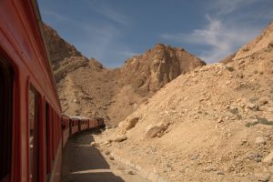 18 March: Since we didn’t know if we’d have another chance to explore Tozeur, we set the alarm for 6 am and did a quick 20 minute hike into town. The old part of Tozeur (Ouled el Hadef) is easily accessible from Avenue Bourguiba. The traditional brickwork alone was worth the early morning wake up…we enjoyed having over an hour of hassle free exploring on our own. Heading back to the hotel, we made a quick detour to check out the Dar Cherait complex (exterior view only since the gates were locked), before having a dismal breakfast at the Residence el Amen (bread, butter and jam, coffee and milk). By 9 am, we were back in the lobby waiting on our driver for the next three days since Ali was in Gafsa picking up the group of five we were joining. Our driver was prompt and very business like, but the minute he found out we couldn’t speak French, all verbal communications ceased. He drove us directly to Metlaoui so we could board the Lezard Rouge (Red Lizard) antique train ride of the Seldja Gorge. The drive took about an hour and we were allowed to board the train without tickets. To our surprise, the Lezard Rouge is insanely popular with tourists, domestic and foreign alike. It was packed already even with 30 minutes to spare! We managed to get a space to stand between the carriages and soon had people squished in beside us. Somehow, Ali managed to find us and he invited us to join the group of 5 further down the train carriage. We told him that since we were into photography, we’d just stay put where we were at so he handed us our train tickets (25 Dinar each) and told us to have fun. The ride through the gorge was better than expected with fantastic scenery. The Tunisian school kids cheered happily through the tunnels and several stops were made for us to take photos. A police and military escort followed us the entire journey, which made us feel a bit more assured since the antique train is such a soft target for terrorists…we shudder to think of the carnage that would ensue if the Lezard Rouge was ever targeted! At one of the stops, Ali introduced us to the other travelers we were joining, and we were thrilled to see that they were a young, friendly group of friends (Ala, Nissaf, Aymen, Hela and Gregory – Hela’s French boyfriend).who spoke excellent English. This was shaping up to be a super fun trip, yay! From Metlaoui we drove towards Tamerza where we stopped to have lunch. Our meal of lamb was quite tasty but with way too much food. We left absolutely stuffed as we headed out to check out the old walled town of Tamerza followed by a brief stop at Tamerza’s waterfalls. Next up was a short hike through the small oasis village of Chebika, which was abandoned after the floods of 1969. Since we were running out of time, we immediately drove out to the desert as soon as our Chebika hike was over. First stop was Ong Jemel, a rock formation in the middle of the desert that looks like the neck and head of a camel. We got to play with a fennec fox which was both fun and sad because we realized the fox is a nocturnal animal and the bright sun must wreck havoc on its eyes. Finally, the moment we had been waiting for. A thrilling ride through the desert brought us to Mos Epsa, a Star Wars set from the movie The Phantom Menace. The sun was setting as we finished up at Nefta’s La Corbeille before the drive back to Tozeur. Ali gave us an hour to shower, rest and meet the group for dinner in town where we enjoyed a lovely meal of grilled meats over some fun conversation. To our surprise, we found out the group of 5 all had ties to one person, Ala, and he had arranged the weekend getaway amongst this group of strangers. The way they had been interacting, we thought they had been friends forever. Hela and Gregory both live and work in France, so they were on a 2 week holiday. Hela had grown up next door to Ala, so he was practically her brother. Nissaf, a dentist, was invited by Ala and she was keen on getting away for the weekend since she works crazy long hours at work. The funniest story was how Aymen was tricked into joining the group. When Ala asked him if he wanted to go South, he immediately refused, because he had weekend plans in Tunis. So Ala played along and told him that he could provide a ride to Tunis but to pack his bags for a bit of city and beach life. Unsuspecting Aymen was sitting on the curb when the group drove up in a 4×4 and he instantly knew something was up. Ala was filming the entire sequence of events…the look of poor Aymen’s face was truly hilarious whe he realized he had been duped. Dinner was fun and we were quite happy to have meet some fun travelers to explore Southern Tunisia with.