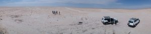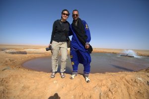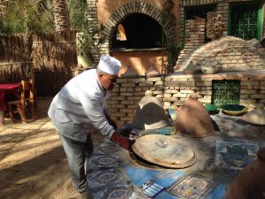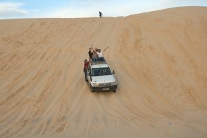 19 March: We slept in till 8:30 am since we didn’t have to leave until 9 am and neither one of us was keen on having breakfast at our hotel again. It took us a while to escape Tozeur as we drove round and round in circles getting all last minute items taken care of. Ala wanted to buy some dates for his family so 10 KG of dates later (the ones from Tozeur are reputedly the best, and cheap at 3 Dinar per KG), he finally had enough. We retraced our steps into the old part of Tozeur to see if the later morning sunlight made a difference, photography wise. And then we had to stock up on beer, soda and water. Lastly, Ali had to fill up on some gas, so it was 11:30 by the time we finally left Tozeur and started the 300 KM drive towards Ksar Ghilane. First stop was at Chott el-Jerid salt lake where we took a couple of photos, including a couple of optical illusions. Our second stop was to see the sand formations of Dbebcha, which was pretty cool and warranted a brief stop. Then we drove to Douz for lunch at the excellent El Bey Restaurant. The food here is prepared within clay pots, which are sealed with dough and cooked inside an oven built in the ground. Very cool! The owner is friends with Ali so we were invited to see the chef in action. Needless to say, we left feeling completely stuffed. Then we settled in for a long drive to Ksar Ghilane, arriving at 5:30 pm. With just an hour to go before sunset, we all hopped on quad bikes for a ride out in the desert to the old fort (about 3 KM away in the dunes). It was loads of fun, although quite sandy! Our accomodations tonight was our own private Berber tent with a double bed. It was a bargain staying here at the campground since dinner, tent and breakfast was only $30 for the two of us. Dinner was of course way too much food again…we are noticing this trend down here in Southern Tunisia. After dinner, Ali took us out for a nice surprise with a party ride in the desert. With our music blasting, drinks flowing and spirits soaring, it was fun to completey let loose out in the sand dunes. Back at the campsite, an entertainer was performing on a traditional musical instrument and Nissaf sang along. She has such a pretty voice. The smoke filled bar was just too much for us to handle though, and we stayed as long as we could stand it. Thankfully, both Gregory and Hela are irritated by smoke so we had an excuse to leave when all of us succumed to the smoke fumes. Ali told us to be ready to leave by 8 am since we all had a long day ahead of us tomorrow.