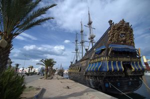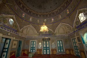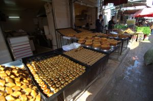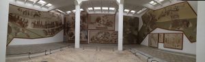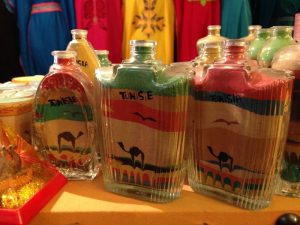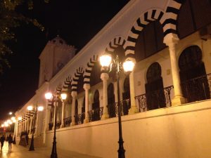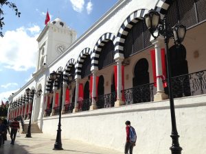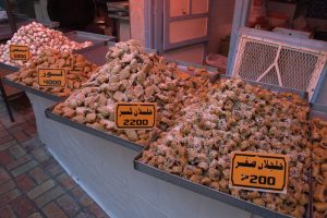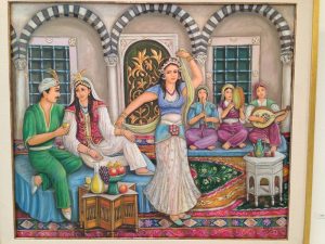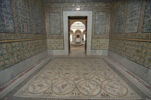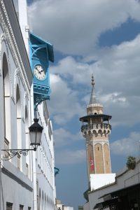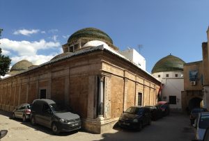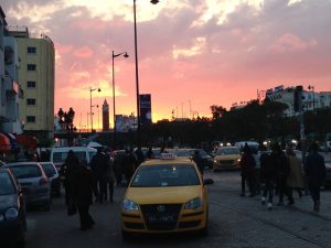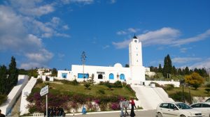 16 Mar: Today we were visiting the world famous Bardo museum, known for its fantastic mosaics housed in an old palace. First, we wanted to take in some sights near the Dar Ya. Just before we were leaving, Becky found out that due to strikes, the overnight train we had planned to take from Tunis to Tozeur was not operating. Bummer! We had counted on getting some shut eye on the train ride. Ali (our guide from Tozeur who had been the bearer of the bad news) suggested that we either fly or take the bus. What to do? Rather than let this unwelcome news distract us, we figured we could deal with it later tonight and set out to explore on this fine day. The weather forecast had been all doom and gloom, predicting a 90% chance rain so we packed our rain jackets just to be on the safe side. First stop was Zaouia Sidi Brahim (free), the tomb of Sidi Brahim.The only requirement was for Becky to cover up with a head scarf. Next was the Zaouia Sidi Mahrez, which was full of locals paying their respects so we decided to move onward to the Halfaouine market which was a super colorful stop where we bought some dates (the cheapest we saw was 1 KG for 1,800 DT), cashews and almonds. From the market, we decided to hail a taxi to the Bardo Museum. The internet is rife with taxi rip offs in Tunis but the driver we had was honest and the fare was only 3 Dinar to the front gate. Ever since last year’s terrorist attack on the museum, security has been tight and we were screened at the main gate just to be allowed access to the museum grounds. Then we went through a second security check point and saw a memorial on the wall commemorating the victims killed in the March 2015 massacre. Entrance was 12 DT each, plus 1 Dinar for a camera fee. Robby had to drop off his backpack but Becky was allowed to carry her camera bag…go figure. The museum is absolutely world class….the mosaics were stunning and truly mesmerizing. The collection of mosaics found throughout Tunisia is just mind blowing in their sheer size and phenomenal condition. Before we knew it, it was almost 2 pm before we could drag ourselves away. Lunch was a picnic in the museum’s grounds before we made our way over to the Metro system to figure out how to catch line 4 back to the city center. Tickets were sold at a nearby booth for just over a Dinar each, and we joined the throng of locals waiting from the next tram. When it showed up, it was a pushing match to board. The poor folks waiting to disembark had a difficult time being allowed to get off the train! It is pure madness during non peak hours. We can’t imagine using the metro during peak times. Our next destination was the Tunis Marine TGM station. There, we bought tickets to Sidi Bou Said, a city north of Tunis that reminded Becky of Santorini. The TGM tickets were dirt cheap at a mere 1,400 DT for the both of us, and 35 minutes later we were in beautiful Sidi Bou Said. Our first stop was Dar el-Annabi, a lovely 18th century home that is open to the public. Definitely a worthwhile stop for a glimpse of yesteryear. We wandered the streets of this labyrinth like village, and of course had to buy one of their famous Italian donuts, aka a bambaloni (super yummy fried donut hole smothered in sugar), which is a local favorite. Yum! Last stop was at Cafe des Delices for its view over the bay. The sun was setting as we made our way back to Tunis and this time, we were lucky enough to score some seats. Back in Tunis, we took photos of the clock tower against a red sunset before heading back to our fast food restaurant for a dinner of rotisserie chicken. Back at the Dar Ya, we stayed up late coming up with a game plan for how to get to Tozeur on time for our desert excursion. This required making a couple of schedule adjustments and trying to figure out what time the bus would leave Tunis tomorrow morning. According to the internet (and the bus schedules are notoriously unreliable), the first bus was at 11 am. So our plan was to take that to arrive in Tozeur at a reasonable 6 pm.