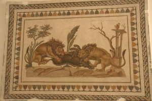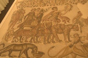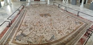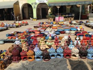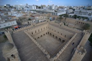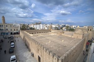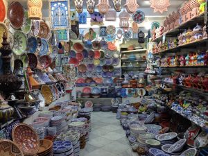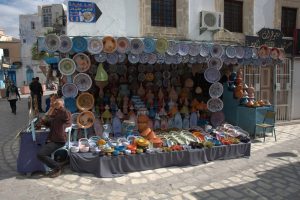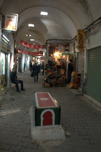25 March: Today was a full day of Sousse sightseeing! We started off visiting the the Ribat (7 Dinar entrance plus 1 Dinar photo permit) and immediately climbed the tower which offered phenomenal views over the medina up to the Kasbah’s Khalef Tower looming on the hilltop above. Stunning! Plus from our vantage point, we could peek into the nearby Great Mosque’s courtyard, which looks more like a fort than a mosque due to the lack of a minaret. The Ribat was a great way to kick off our morning, and we followed that visit wandering through the medina towards Dar Essid, which was supposed to be another highlight of the city. Unfortunately, it was closed when we visited. Too bad, as the traditional home (now a museum) looked pretty amazing from the outside, and we could tell there was a lookout terrace to look out over the medina. So we pressed on and got lost in the medina, checking out the intricate doors of Sousse. While wandering the souq area, we stumbed upon a colorful cafe called “No Stress”, and the friendly owner convinced us to stop for a cup of tea and coffee. After our siesta, he led us on a walking tour of the medina, taking us to two traditional houses (also open to the public) which we would never have found on our own. After following him around for the better part of an hour, we thanked him with a 5 Dinar tip and he seemed quite happy with that and made us promise to add him as a facebook friend, ha. We strolled up the picturesque Rue Souk el Caid and passed through Bab el Gharbi before skirting the exterior of the wall looking for the entrance to Sousse’s archaeological museum in the Kasbah. The entrance fee was 9 Dinar a piece with a 1 Dinar photo permit fee. As anticipated, the mosaic museum was excellent. We had been told that after the Bardo Museum, the Sousse museum was the next best in Tunisia and found that to be the case. The Medusa and Bacchus mosaics were especially interesting, as well as the Baptismal font…just wow. Unfortunately, the Khalef tower has been taken over by the Tunisian military and today it functions as a lighthouse for Sousse so we weren’t able to climb it for views over the city. The fish market at Bab el Jedid rounded out our afternoon excursions and we were both starving so we hit our favorite shawarma stand again. The boys were happy to see us and teasingly offered to make our sandwiches extra spicy. The chapati shawarma wraps were even tastier today and incredible value at only 6,400 Dinar for two massive sandwiches. We are going to miss Sousse! Such great value. The nearby shopping center of Soula beckoned. Its a massive 4 storey building full of fixed priced souvenirs and was full of tourists (domestic and foreign). A scam artist tried to prevent us from going in, claiming to be the chef from our hotel and come see his brother’s store with cheaper prices. When we questioned him which hotel, he was taken aback…apparently he hadn’t thought that far ahead. He quickly said “your Sousse hotel” and we laughed him off. The security guard for Soula Shopping Center had been watching our interaction with him and warned us to steer clear of him as he was bad news. No advice needed, we knew to keep our distance! Soula is popular and deservedly so with lots of nice souvenirs. Back at the hotel, we hopped onto wifi to get caught up with the latest world news. Tomorrow’s adventure will be getting from Sousse to Kairouan by louage. We will certainly miss Sousse which has been a great base for us over these past few days.