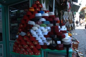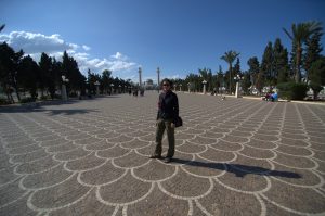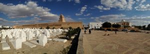It was now late afternoon when we walked back to the Great Mosque, detouring to check out Bab el-Khoukha, the oldest gate of the medina. We circled the Great Mosque in the afternoon sunlight, stopping to check out the Lalla Rihana Gate (dating from 1294). The cemetery adjacent to the Great Mosque was also lit up in the afternoon sun so we took a few photos before asking for permission to climb to the rooftop of a nearby carpet store which had a nice panoramic view of the Great Mosque. The shopkeeper half heartedly tried to entice us to buy some carpets but quickly saw that we weren’t shoppers. We settled for getting 11 postcards of Tunisia for 1 Dinar…yup, big spenders here! The rest of the afternoon was spent wandering back alleys of the medina. It seemed that Kairouan, unlike all the other Tunisian cities, had the most hassle. Anyone speaking to you in multiple languages always had an agenda, whether it was to serve as an impromptu tour guide, or a “come look at my carpet shop”, etc. It got old quickly even though we played it cool. There really aren’t many foreign tourists here right now so we can easily understand why we look like an enticing target but getting accosted every few minutes by another helpful fellow just wasn’t welcome at the end of a long day. Finally, we retreated to our room overlooking the bustling Place des Martyrs and settled in for the night.