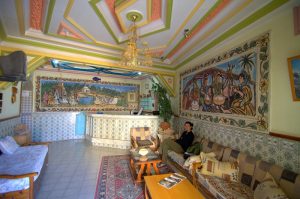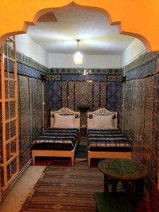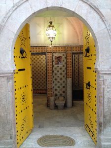 After withdrawing the remaining Dinar needed for the trip at an ATM, we dropped our gear off in the room and had a chance to talk to Khaled (owner of Dar Ya). He explained that he bought the building (circa 1850s) about 3 years ago. 2 years were spent on renovations, and the hostel had been in operation for a year now. We were quite impressed to hear that he put us up in his favorite of the 14 rooms (each named after a family member. We scored the honor of residing in Chamber 4, “Narjess” which was named after his wife. His two daughters also had rooms named after them, and his next favorite room was named after his beloved mother). He jokingly told us he had to name a room after his mother-in-law to keep the peace! The name of the hostel “Dar Ya” means “House of the Grandmother” and it was evident how proud Khaled is of his place. The closest competition is the youth hostel in the medina, run by a grouchy owner who locks up for the night at 9 pm (the curfew imposed on University students in Tunisia). Someone didn’t tell the tourists about that so many of them end up locked out of the hostel for the night! Yikes, with horrible customer service like that, we have no doubt Dar Ya will become super popular once the word gets out.