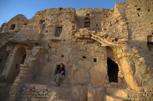 21 March: We both awoke to the alarm sounding off at 7:30 am. What a great night’s sleep in the cave! While we were having breakfast, our local guide Ismail Degnich (isma-l113@live.com) showed up as promised. We discussed a quick itinerary (Douiret, Ksar Ouled Debbab, Ksar Ouled Soltane, Tataouine, Ksar Megabla) and he called a local driver to see how much it would cost to hire a car for the day. After back and forth negotiations, we got the price down from 120 Dinar to 80 Dinar, and Ismail said we could pay him whatever we felt comfortable with for his guiding services. By 10 am we were on our way to the first destination of the day, the abandoned hill top village of Douiret. Having Ismail as a guide was truly invaluable as he brought the now dead city to life with his vivid descriptions of daily living in this ancient Berber village. The walking tour of this village took about 90 minutes and we were both very pleased with Ishmael. Our next stop was the first Ksar of the day, and Ouled Debbab did not disappoint. Even though its been restored, its still quite picturesque and extremely photogenic. We couldn’t believe we were the only tourists in sight and had the whole place to ourselves. From Ouled Debbab, we drove onward to the granddaddy of all the Ksours, the world famous Ksar Ouled Soltane. If you can only visit one Ksar in Tunisia, make it this one because it is an unbelievable four storeys tall surrounded by two courtyards, with over 400 ghorfas (barrel vaulted grain storage rooms). Pretty awesome place which totally took our breath away…two huge thumbs up. Even our patient driver was eager to check out Ouled Soltane, and all 4 of us (driver and guide) were busy snapping away. It was getting hot by the time we left Ksar Ouled Soltane for the 22 km drive back to Tataouine but Ismail had agreed to take us for a quick walk through the market place (pretty basic, nothing to write home about) and the artisan square which was full of souvenir shops. From Tataouine, we drove to the last Ksar of the day, the nearby Ksar Megabla which dates from 1409. Since none of it has been restored, its is the perfect Ksar to imagine what all the surrounding Ksars looked like in their heyday. Its quite hard to picture what the Ksars looked like originally after undergoing heavy restoration. Our driver flew back on the return trip to Chenini, and we were back in town just after 2 pm. There we met the friendly owner of Residence Kenza, Dr. Belhedi Habib. He spoke excellent English and invited us to join him for a drink at the restaurant. Once he heard we were heading to Sfax, he immediately called up his American friend, Austin, to link us up together. Super nice guy! We were so impressed with his vision of Kenza and hearing the stories about his wife, Nedra Boulila, who is a champion for women’s rights in Tunisia (especially down in the South). Its obvious both Belhedi and Nedra deeply love Tunisia and were very pleased to have run into the good doctor.