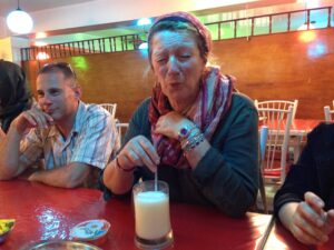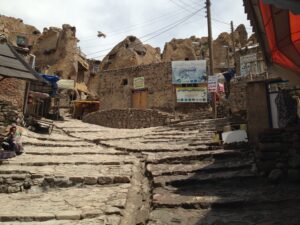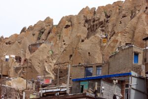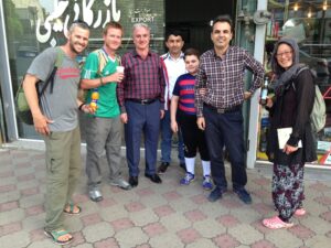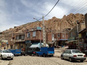 18 May – Today we were driving to Tabriz. We were making good time as we drove towards the city, so Becky asked Kate if it would be possible for the truck to take us to the nearby village of Kandovan, also known as Iran’s very own Cappadocia. Kate checked with Kyle since it would be a bit of extra driving on his part but he was game, so we took a vote and it was a unanimous decision to delay our arrival to Tabriz and visit Kandovan as a group. Yay! Once there, we were treated like celebrities with all the locals begging to take photos with us. The curiosity, excitement and adoration was incredible. Everyone felt like rock stars and we happily agreed to pose in countless photos or selfies. Everywhere we went, locals were filming us with their phones…Lord knows we don’t make interesting subject matter but the locals seemed thrilled to have a truck load of tourists visiting in town and they made no effort to hide their excitement. Little Cappadocia doesn’t compare to the real deal, but we enjoyed our quick excursion out to this small village. After a quick truck lunch stop near Kandovan, we drove back to Tabriz. This massive sprawling city was a bit tricky for Kyle to navigate, and we ended up driving round and round in circles looking for our hotel, the Darya (close to the industrial part of town near the train station). After getting settled in to our rooms, we were keen on checking out Tabriz’s famous bazaar but quickly discovered we were about an 8km taxi ride or 2 hour walk away. So instead we just wandered around the hotel area to check out the nearby surroundings. Becky’s cook group had to shop in Tabriz tomorrow, so she was on the lookout for bakeries, supermarkets and local produce stores. Restaurants were few and far between, and the shopping selection seemed sparse but we eventually spotted an area that looked promising. After running into Ichi and Lars on the street, we quickly gave them a rundown of our impromptu tour around the area when a local business owner ran out of his store to give us gifts of orange juice and alcohol free beer, along with paper cups so we could enjoy our refreshments. People in Iran are insanely kind and welcoming! Can you imagine someone in the US doing that to foreign visitors hanging outside their storefront? No freaking way. Back at the hotel, we took a quick shower before linking up with the group for dinner. Thankfully Helen and Gill had found a local place serving up kebabs with sufficient seating for our large group. The waiter and chef spoke no English but they showed us the various skewers they could whip up and we used sign language to place our order. Each kebab was served with a 3 foot long slab of bread and a garlic yogurt…yum! Our meal was under $5 each even with all of us picking up Kate and Kyle’s tab, which was good value. Back at the hotel, we unhappily discovered that Iran does indeed block Facebook and a wide variety of websites. Our VPN software also didn’t work so we were out of luck for the time being until we could figure out a workaround. The wifi signal was pretty crap in the room so we just checked email and called it a night.