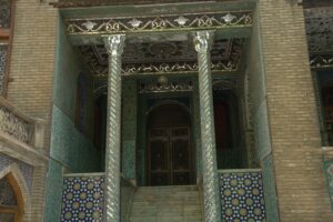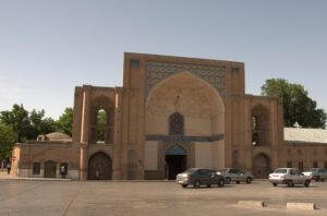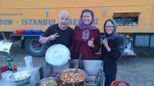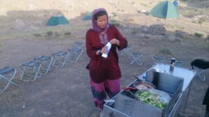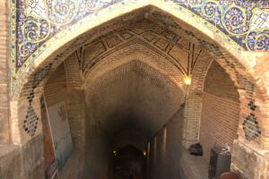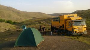 20 May – After our 7 am breakfast of minamin (a Turkish dish of eggs sautéed with onions and tomatoes), we loaded up on the truck and drove onward towards Tehran, with plans to bush camp tonight. Hossein joined us on the truck and loaded up his luggage in the compartment next to ours, so Mark had to relocate his expensive camera gear. Kate served up a truck lunch, and in the late afternoon we had a brief stop in the town of Qazvin. The town is famous for having the largest underground cistern in Iran (Sardar Big Cistern), which we paid an overpriced 50,000 Rials to enter (only 10,000 for locals and free for guides). We had a few minutes to check out the rest of Qazvin so we hurriedly rushed off to see the Jameh Mosque and Ali Qapu Gate (a 16th century gateway to the Forbidden inner city). Only later did we realize we shouldn’t have taken photos at the Ali Qapu gate since today it houses a police headquarters. Luckily we got away with it, and we had just enough time to score some cold chocolate milk at a nearby supermarket before heading out of town for a bush camp. We drove for quite a while before we found a suitable location, away from the prying eyes of curious locals in the village of Khoznan (possibly Ziyaran). Cook group 3 (Becky, Andy, Ichi) made chicken fajitas which were a treat. Cooking by gas took a while because our campsite was quite windy and the vegetables and meat took forever to cook down. After dinner, we threw a kettle on for a rare cup of hot tea before calling it a night.