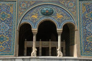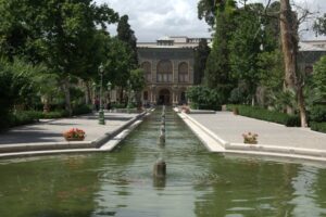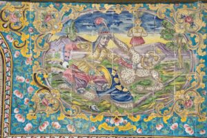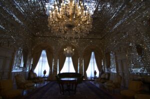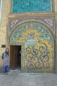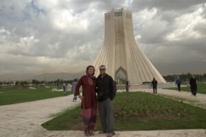 21 May – Today we were headed to Tehran! Since our bush camp wasn’t too far out, we were in the capital before lunch. Kyle stopped at Liberty Square on the drive in, offering us an opportunity for a brief photo stop. Our hotel in Tehran was the very pleasant Ziba Hotel, not far away from quite a few of Tehran’s sights. We checked in and had unpacked when Andy came knocking on our door. Since we had been given a twin room and he and Gunji had been giving a double, we had to switch with them…no biggie except Becky had just dropped the kids off in the bathroom, so what a nice surprise from those two when they check out the toilet facilities. Since Helen and Anthony were keen on seeing the same stuff as us, we linked up with them and Ichi and Lars to the former US Embassy (now referred to at the “US Den of Espionage”). It was a solid 30 minute walk away and we were able to take photos there even though our guide book had warned us it would be hit or miss, depending on who was nearby. As we made our way around the compound, Anthony was warned by a watchful guard to put his camera away so he warned the rest of us and we quickly complied. Ichi and Lars left to see a palace located on the city outskirts, while the rest of us backtracked towards the hotel in search of lunch. On the street, we were constantly being offered free drinks to try (our favorite was the one with tiny passion fruit seeds floating around in it). Apparently throughout the day around the entire city, free items were being handed out to all passersby. We saw free flowers, drinks, snacks, and later heard that free ice-cream was given to everyone. After happily gulping down our free drinks, we found a chicken rotisserie shack which was good value with a whole chicken, salad, bread and drinks costing the 4 of us 250,000 Rials total. After lunch, we walked over to the Golestan Palace which would have cost a whopping 950,000 Rials to see all the sights. Instead, we opted to pay for the main halls which was still quite expensive at 300,000 Rials a piece (150,000 Rials for entry into the Palace grounds and another 150,000 Rials for a special ticket for the main hall). No photos were allowed inside the mirrored main hall, although Robby managed to surreptitiously take a few. To round out the rest of our Tehran sightseeing day, we strolled through the bazaar with Helen on the quest to find another long sleeve shirt to wear in Iran as she only had a single merino wool long sleeved dress to wear as an appropriate top. Mission success when she scored a long sleeved purple top for about $5. The heat of the day tuckered us out, so we head back to the hotel for a bit of rest before dinner with the group. We got lucky at dinner, finding a nearby restaurant that served up delicious lamb skewers served with rice…yum. Kate even managed to get a delicious selection of salad, olives and yogurt. Vegetarians in Iran have a hell of a time finding decent food to eat! Back at the hotel, we finally cracked the code on a suitable VPN allowed in Iran, but the wifi was so painfully slow that internet was pretty much unusable.