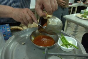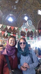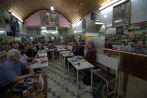 19 May – Today’s Tabriz city tour was scheduled for 10 am, so we got up at 7 am for breakfast . Kate informed us that Hossein had texted to inform her that he’d be running late, and would be at the hotel at noon instead. That gave us a bit more time to kill in the morning, so Becky decided to take advantage of the delay by doing cook group shopping right away so the rest of the day could be dedicated to seeing the sights. The shopping budget in Iran was pretty generous (1.2 Million Rials for the 17 of us) and we didn’t end up spending all of it so we gave Kate the difference. Since the truck was parked on the street outside the hotel under the hot sun, we decided to store our cook group food in the fridges in the room since we had bought chicken, cheese and yogurt that had to remain cool. Becky acquired a case of water which we stuck in the freezer to have some ice for tomorrow’s long drive day. Back in the lobby, it quickly became obvious at noon that Hossein was a no-show. By 12:45, Kate told us that he would be in Tabriz in another 90 minutes if we were so inclined to wait for a guided city tour but all of us were fed up waiting for him by that point so we hailed several taxis and made a beeline for the bazaar (80,000 Rials for the 8 km journey split between 4 people). Everyone dispersed straight away once we hit the bazaar so we made our way to the tourist information office for a map of the city and lo and behold, SCUBA Gill and Dya were already there flirting their way into getting as much information out of the friendly staff! Good going girls! We decided to hang with them for the rest of the day, which ended up being great fun. First stop was lunch. Nasar from the tourist office showed us a nearby local restaurant that was underground. Two thumbs up…good service, good food and cheap prices. We were quite happy with the recommendation. Becky ordered the dezi (lamb and chick pea stew), which was their specialty. Robby, Dya and Gill ordered the kebabs and were quite satisfied. Total bill for our meals and drinks came out to 100,000 Rials each (about $3). Our afternoon self guided city tour of Tabriz was the following: Arch of Alishash, City Hall and the Blue Mosque. Dya befriended a local man at the Blue Mosque and ended up giving him all her contact info and her social media accounts. He even linked their two cell phones together and we joked that she was going to find all her bank accounts drained because he was a very competent IT specialist who was going to town with her phone, ha. The rest of the group caught back up with us at the Blue Mosque but we left them as we headed over to Elgoli Park, a decent taxi ride away. It was a pleasant place for a stroll and again, we were inundated with requests for photos and selfies. This must be how celebrities feel and to be honest, its quite exhausting to always have to be on your best behavior, serving your role as an ambassador of your country. This one interaction could have a huge impact on how your country is judged, so we tried our best to be kind, patient, friendly and happy with the relentless requests. The rest of the group again caught up with us, and we saw Anthony happily munching away on an ice cream in a waffle cone (3 scoops for 30,000 Rials). Jealous of the happy look on his face, we sauntered up to the same ice cream parlor and got some of our very own. Getting back to the hotel was quite the adventure with 3 taxis happily accepting our business. The drivers were maniacs, wildly cutting in and out of traffic. They wouldn’t even stop for pedestrians, picking up speed at the cross walks and daring anyone to cross the street. Once safely back at the hotel, we breathed a sigh of relief and were grateful to have arrived in one piece. Dinner was with the group at 8 pm but once we saw that it was headed to a local fast food pizza joint, we immediately declined and went back to yesterday’s restaurant. It was a good call since pizza in Iran is made with ketchup…eeew! Lars led the group to a local shisha joint after dinner but the girls discovered to their dismay that it was a mens only club so only Mark, Robby and Lars ended up partaking.