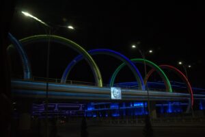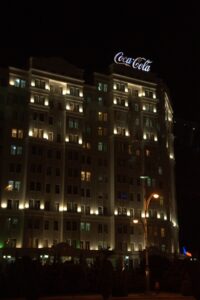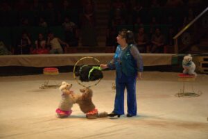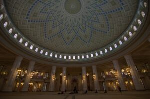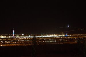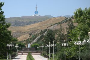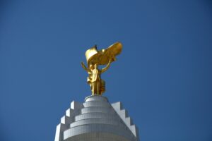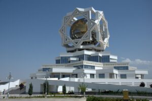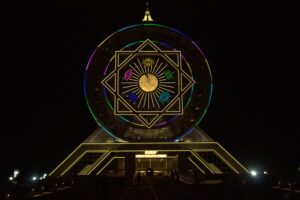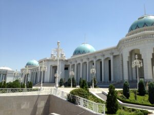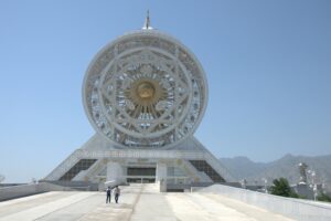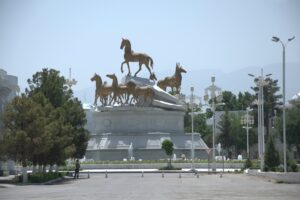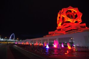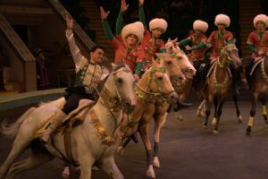 05 Jun – Ashgabat city tour today at 9:30 am led by none other but the excellent Maksat in an air-conditioned bus. The rest of the new travelers joining us showed up with just a few minutes to spare before the tour kicked off. We had a total of 9 newbies joining us: Chris & Tina, Michael, Ben, Brian, Kate P, Warner, Coen, and Bjorn. It would have been impossible to see Ashgabat without transportation because the city is massive and all the interesting sights are spread out. Maksat gave us an excellent summary at each sight and told us when and where we could take photos. We had read beforehand that it was next to impossible to take photos in Ashgabat, but with Maksat at our side, we found that we had a lot more leeway. Granted, the security guards might scowl at us and suspiciously stare at our cameras, but we were left unmolested the entire day. Highlights of Ashgabat were the Independence Monument, Neutrality Monument (complete with a large golden statue of Türkmenbashy), the world’s largest Ferris wheel, Saglyk Ýoly Park, Gypjak Mosque, and the Russian Bazaar. Lunch at the Russian bazaar was cheap as chips and delicious to boot. Fantastic dumplings and chicken plov! After lunch, we had a brief stop at the Wedding Palace for photos before pulling back at the hotel by 4:30 pm. Connie had discovered that the circus was in town today at 5 pm, so a group of us happily attended. Tickets were an unbelievable 2 Manat (50 cents) and the show was amazing! Lots of talented performers, and our very own Michael was pulled from the audience to perform in a clown act. But the highlight of the show undoubtedly was the phenomenal Akhal-Teke horses. Beautiful, athletic and powerful…amazing combination. Connie got major kudos for recommending the circus as everyone had a great time. We had time for a quick dip in the pool before joining Ichi, Lars and Michael at the Berk restaurant for dinner. Then it was time for the Ashgabat night tour where we got to see this city transform itself into a lively, bustling metropolis. It was interesting seeing Ashgabat by day and night as the difference is striking.